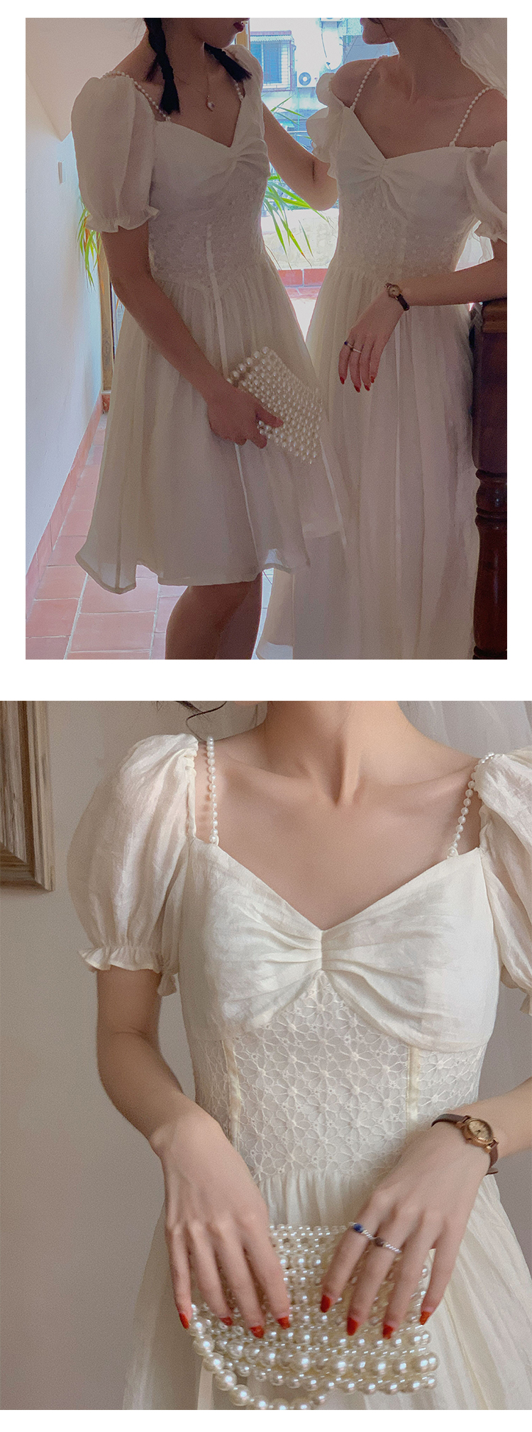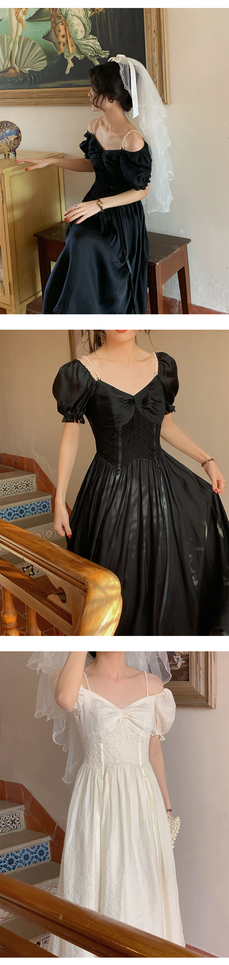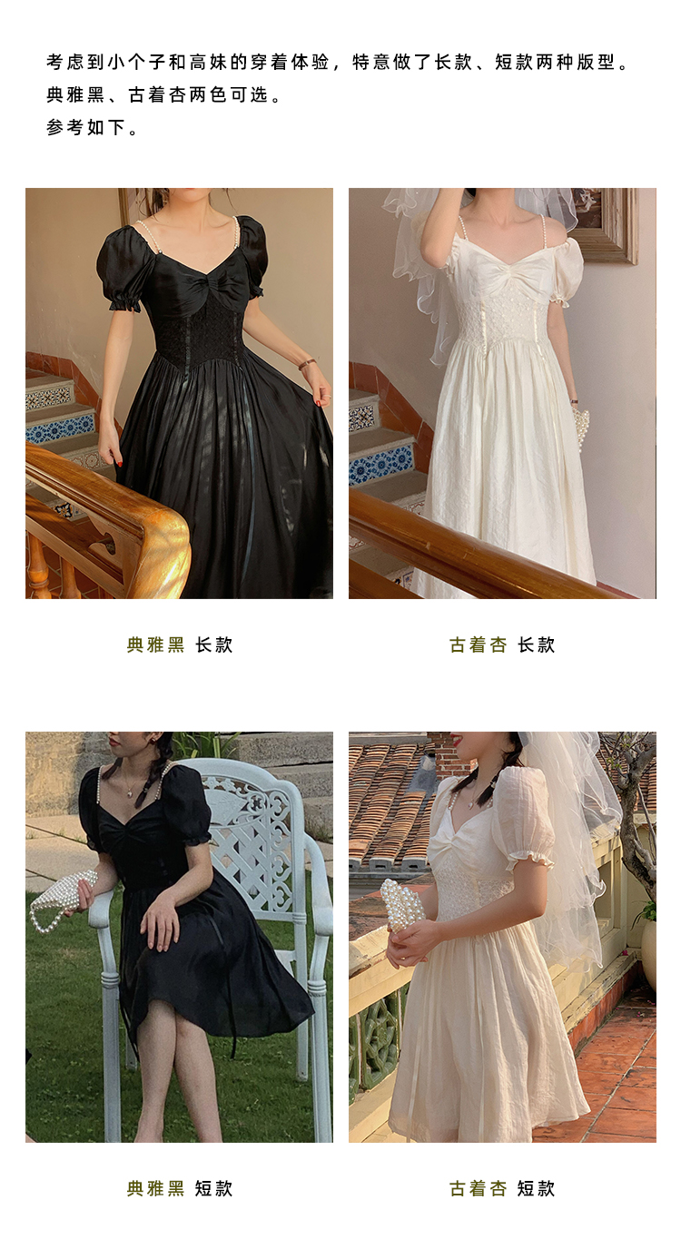三個裁縫 黑天鵝 法式復古珍珠氣質仙女連衣裙女顯瘦2023夏季新款