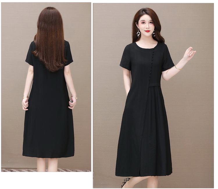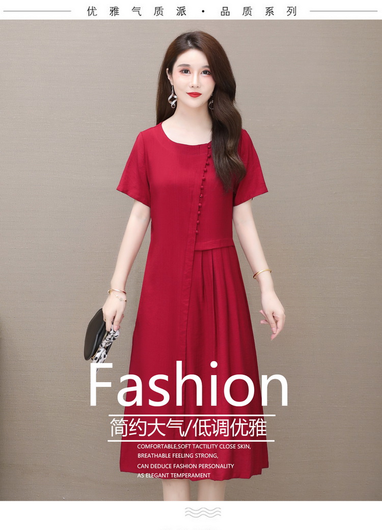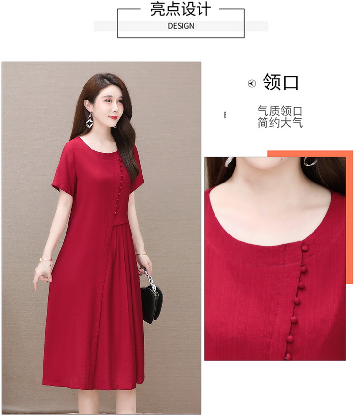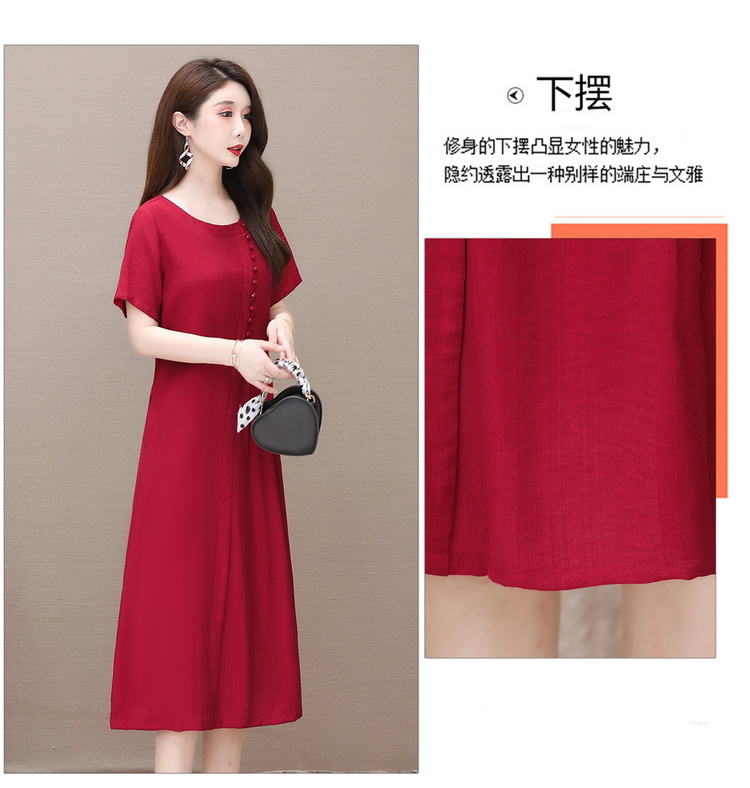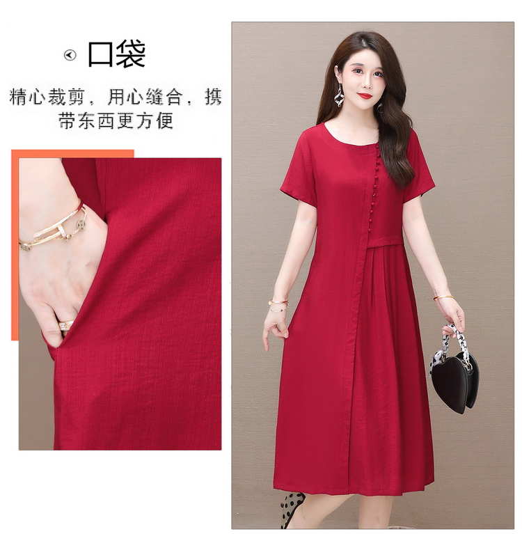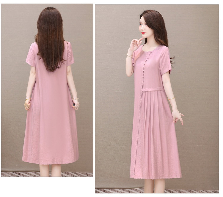 年輕媽媽時尚棉麻連衣裙中老年女中長款短袖夏季新款顯瘦過膝長裙