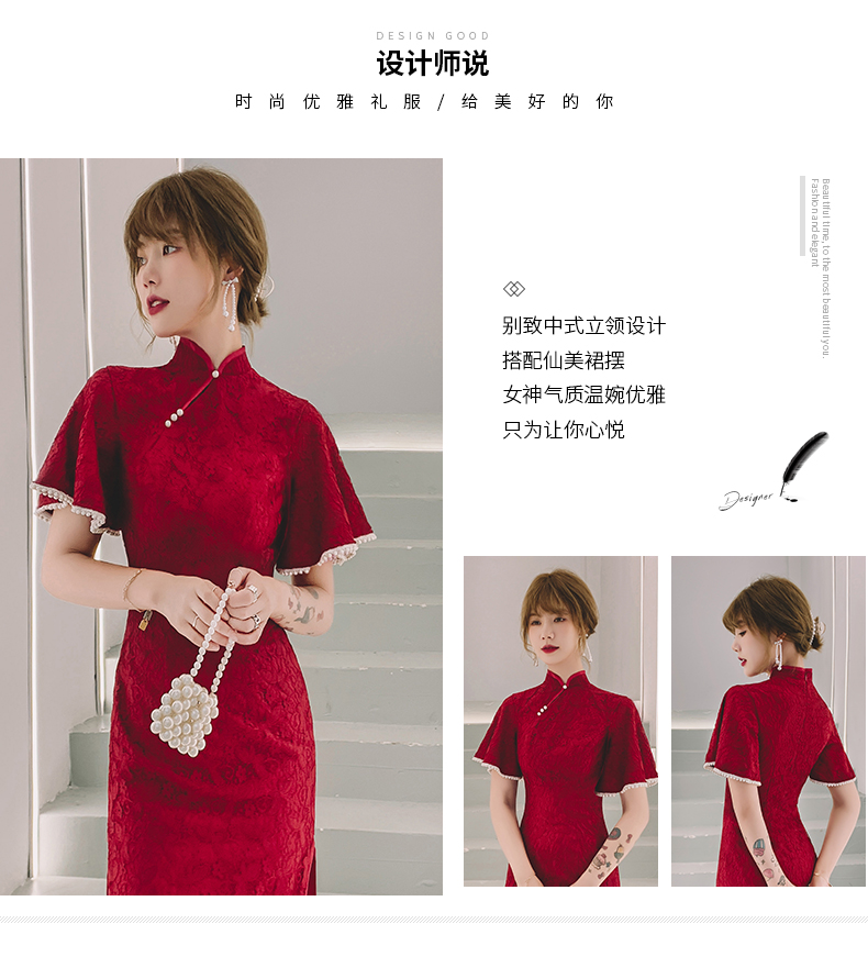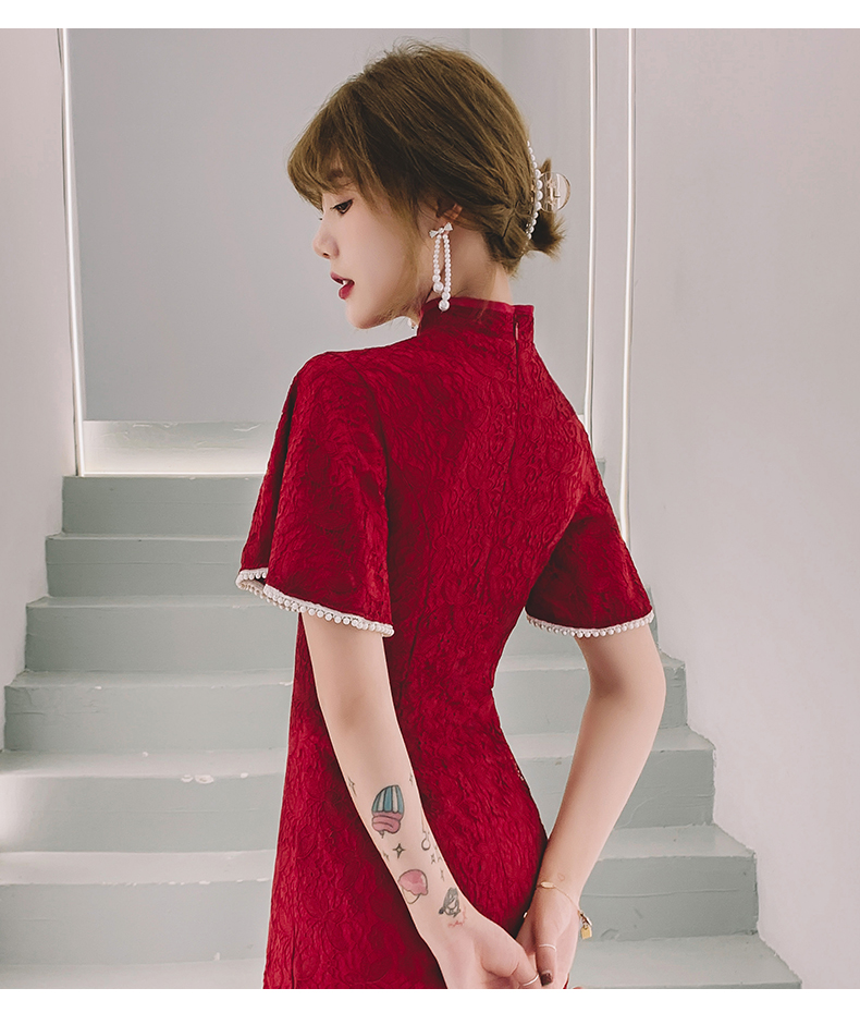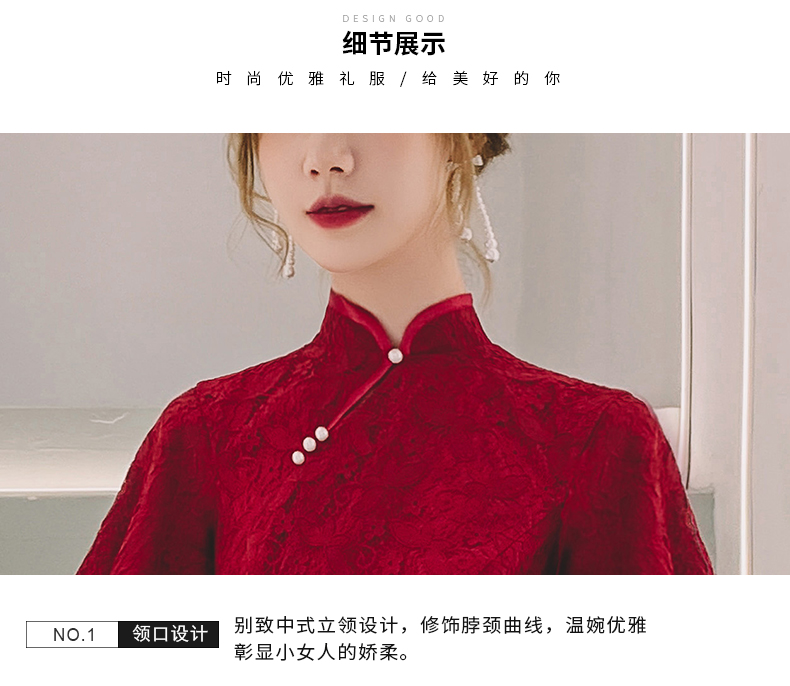 蕾絲紅色旗袍新娘敬酒服修身2023新款冬季平時可穿回門訂婚禮服女
