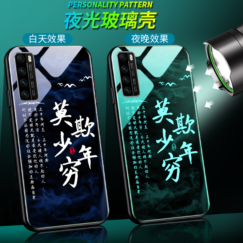 適用勵志文字華為nova7手機殼nova7pro個性創意潮牌男款夜光玻璃中國風nova7se全包防摔高級保護套新款5G