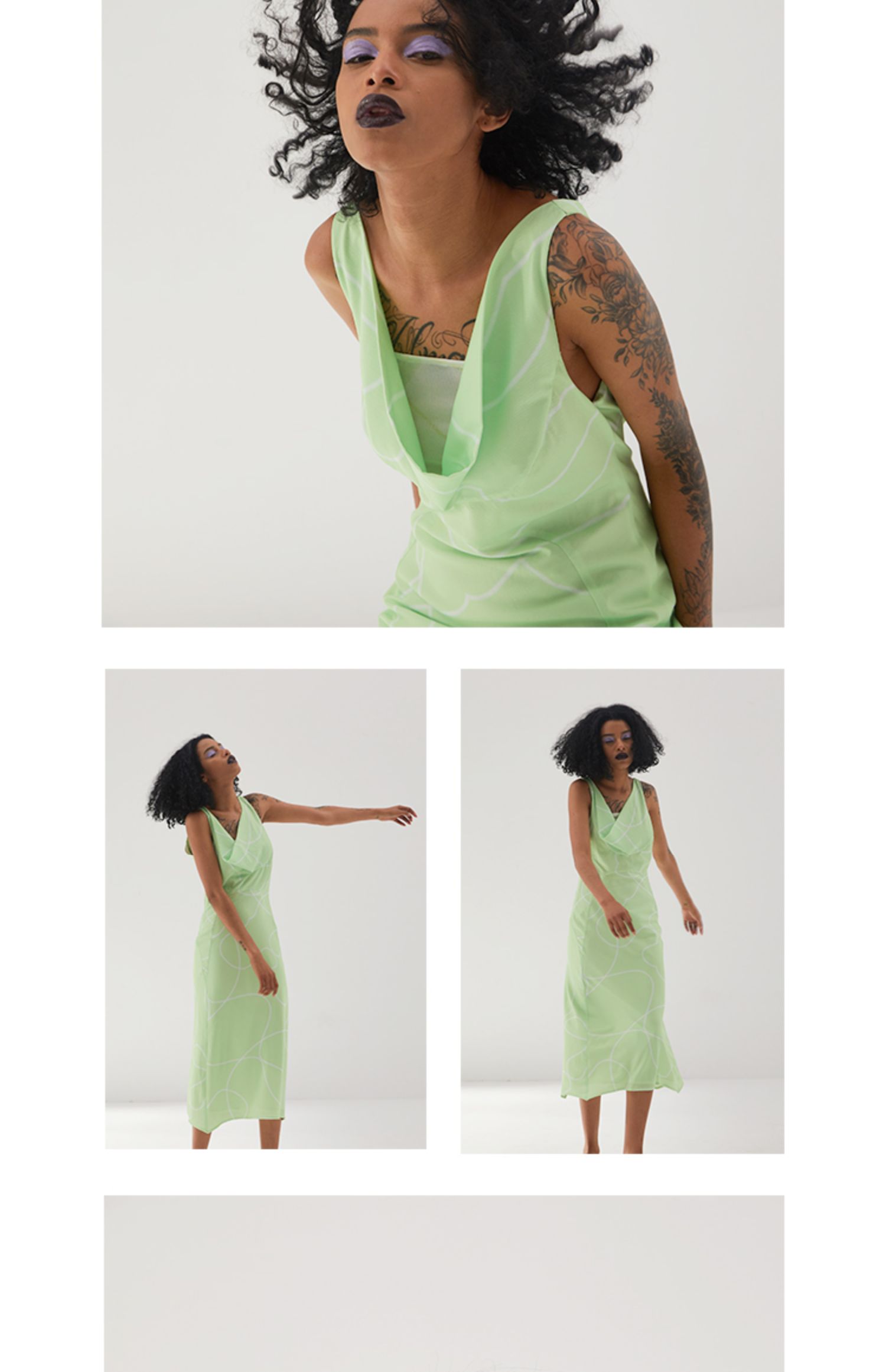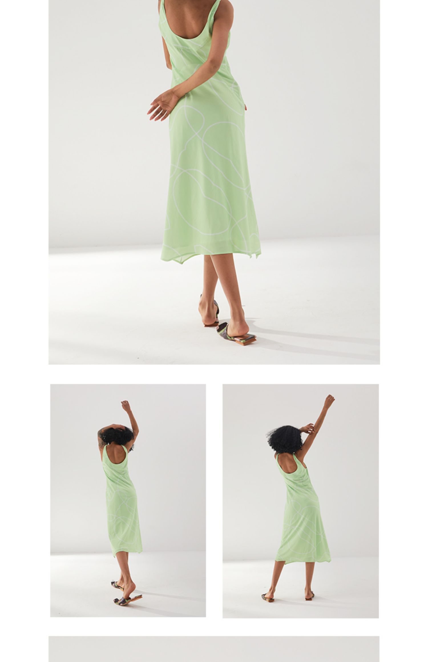 Satins 原創印花 23姆米重縐桑蠶絲 _重磅3米用料 收腰無袖連衣裙