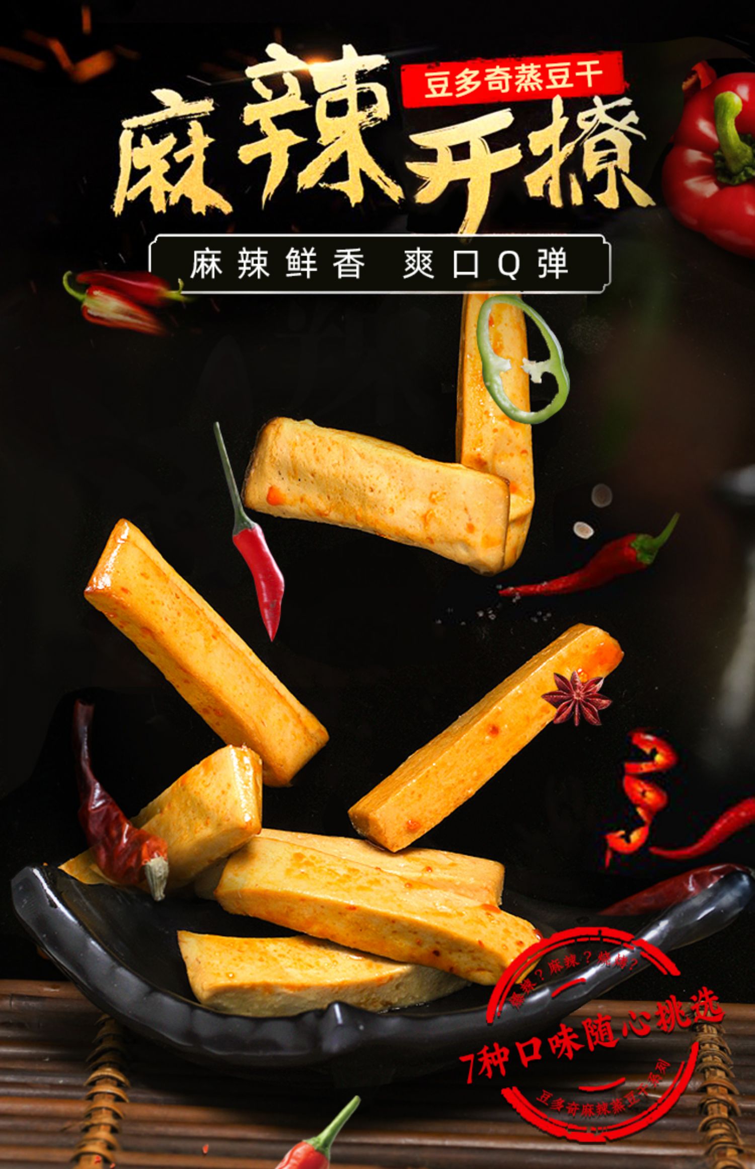 豆多奇蒸豆干麻辣五香豆腐干多口味爽口豆干手撕素肉小吃零食散裝