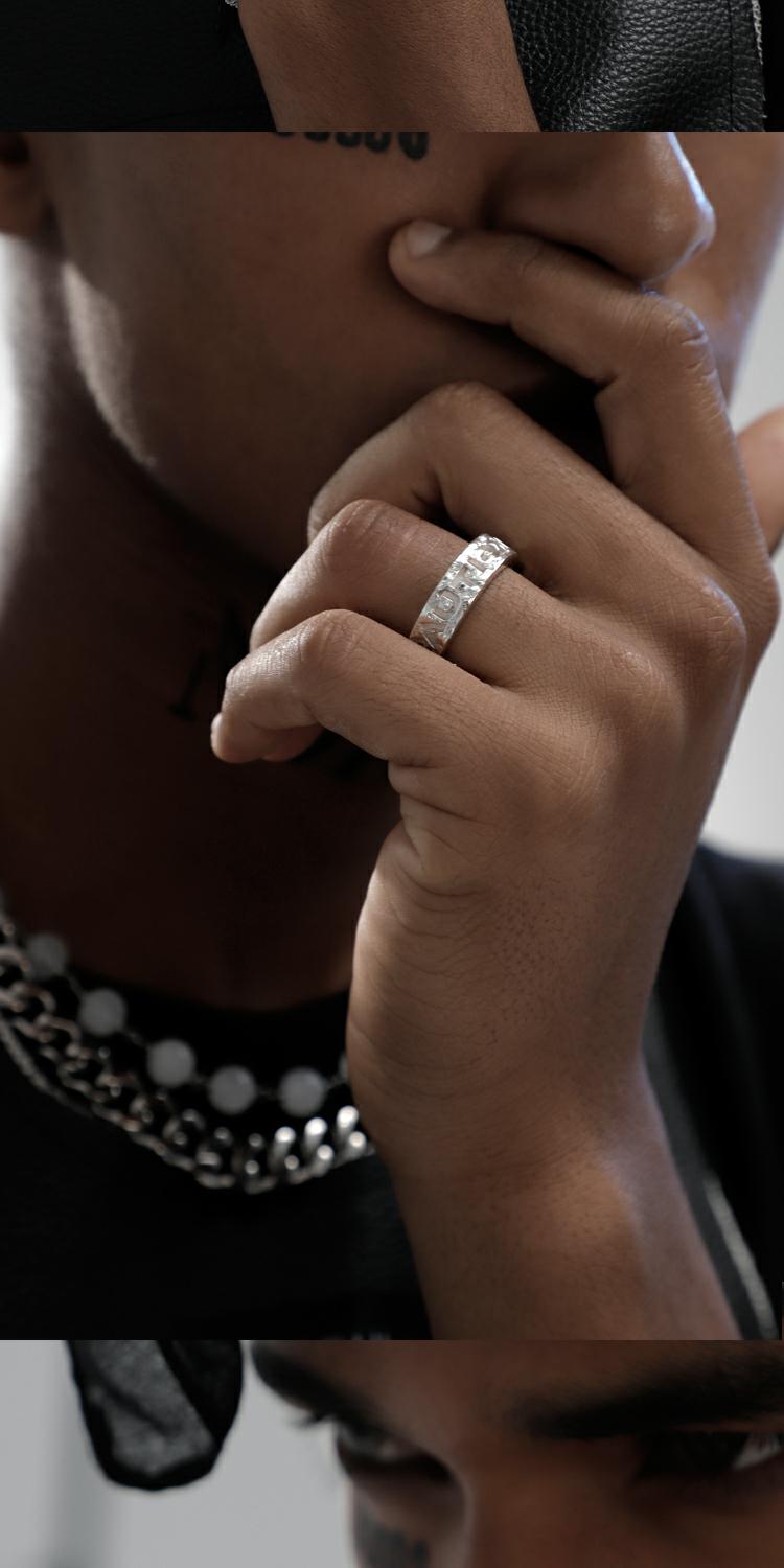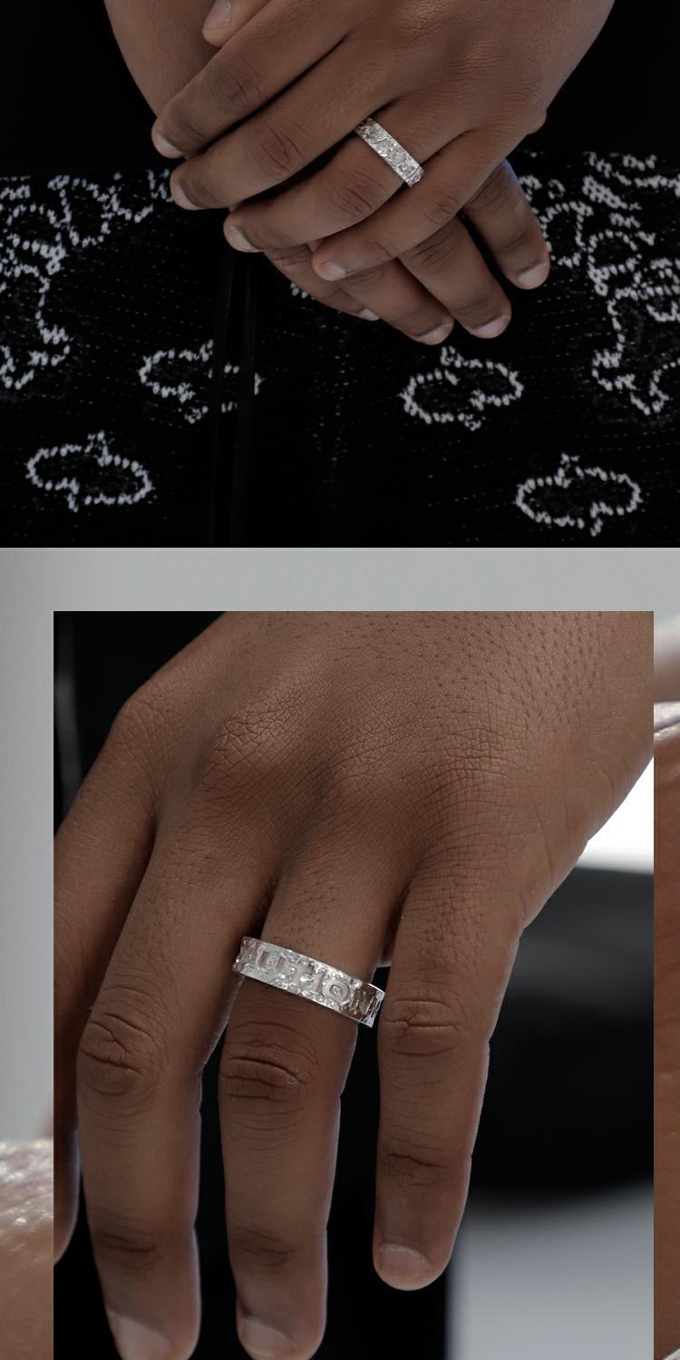 KREAM 原創 CAUTION WET FLOOR純銀凹刻SLOGAN口號戒指情侶款同款