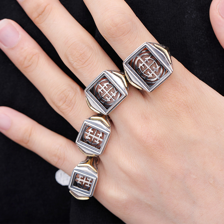 s925空托男士diy鑲嵌蜜蠟純銀戒指