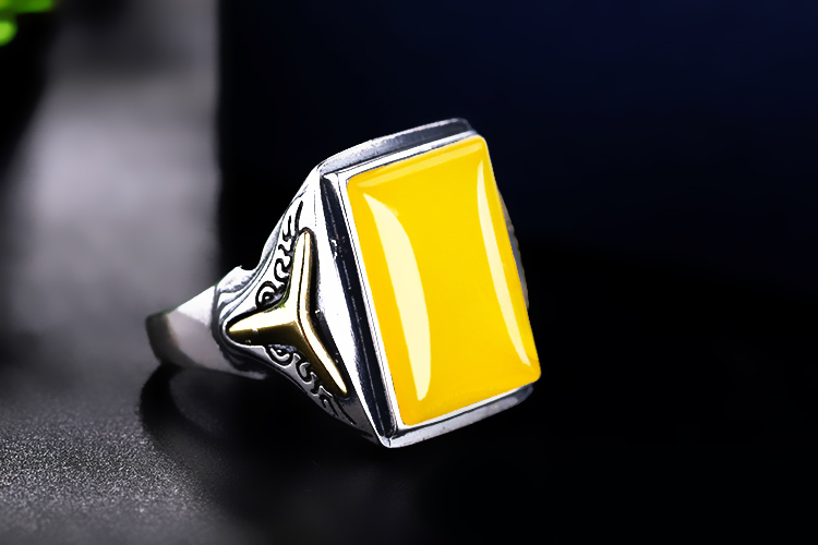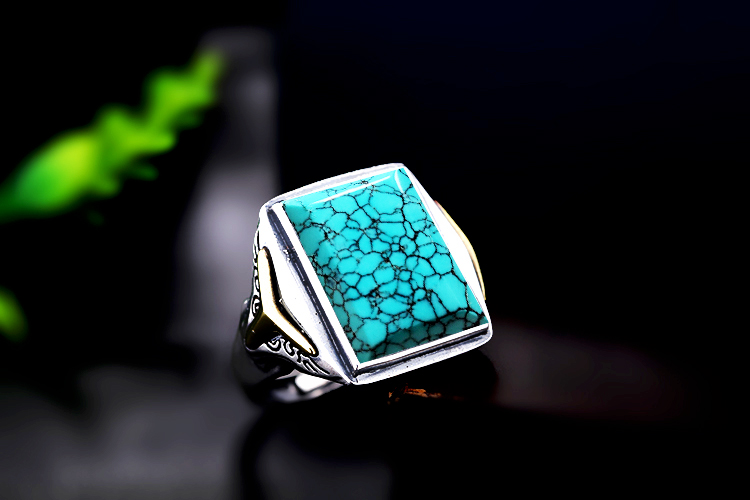 s925空托鑲嵌蜜蠟綠松石方純銀戒指