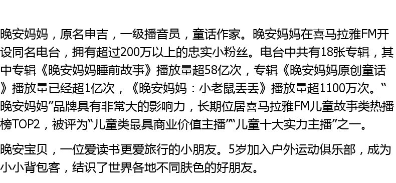 98¥ CZ0001 VN1FWb1JCm6¥ https://m.tb.cn/h.5TkJKMR 【博集天卷】晚安媽媽晚安寶貝繪本全4冊晚安媽媽喜馬拉雅千萬播放音頻給孩子睡前童話故事書籍親子共讀幼兒園啟蒙課外讀書正版 --------------------- 【博集天卷】晚安媽媽晚安寶貝繪本全4冊晚安媽媽喜馬拉雅千萬播放音頻給孩子睡前童話故事書籍親子共讀幼兒園啟蒙課外讀書正版 --------------------- 【原售價】106元 【優惠券】10元 【券后價】96元。