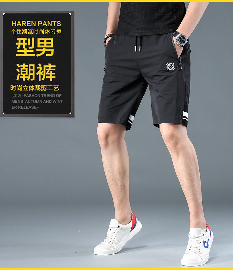 潮牌外穿短褲男夏季薄款光面滑料冰絲休閑五分褲韓版潮流運動中褲