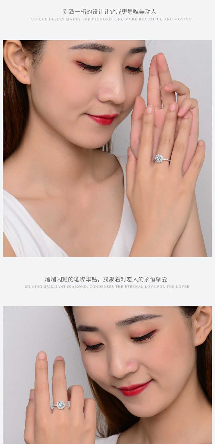 pt950鉑金莫桑石d色鑲嵌圓鉆指環