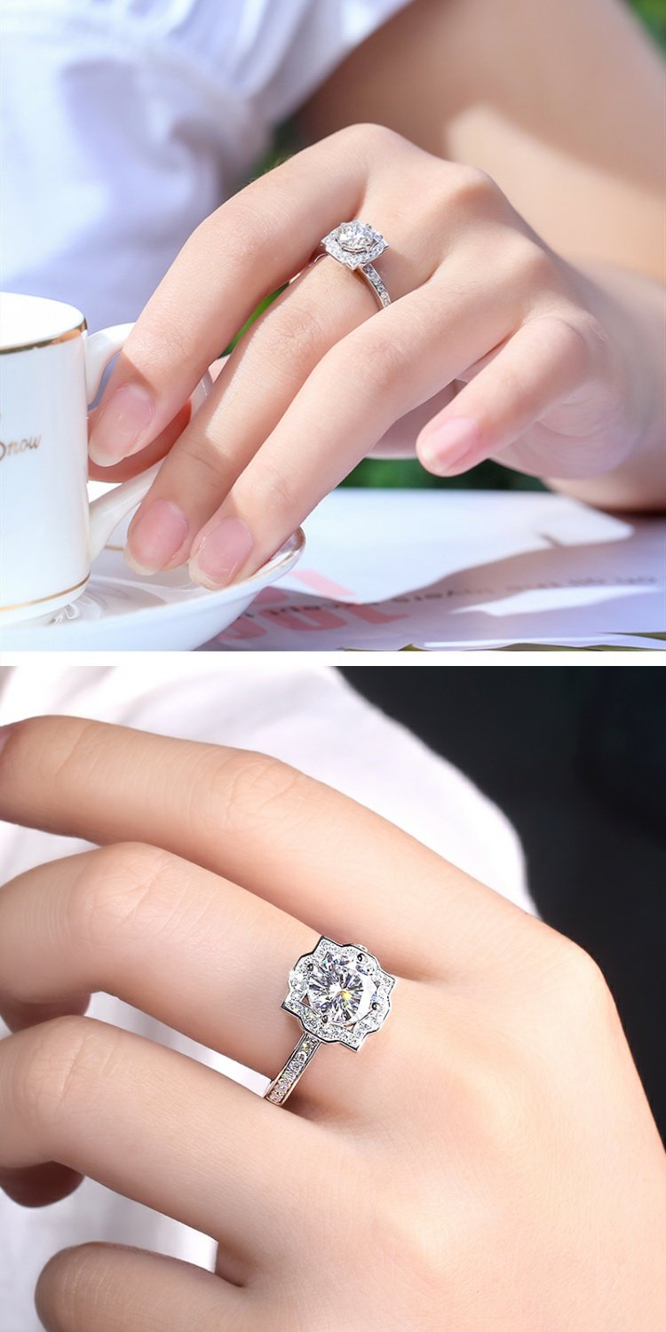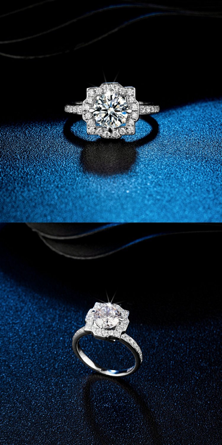 PT950鉑金進口莫桑石蓮花戒指時尚小眾設計1克拉群鑲鉆戒結求婚女
