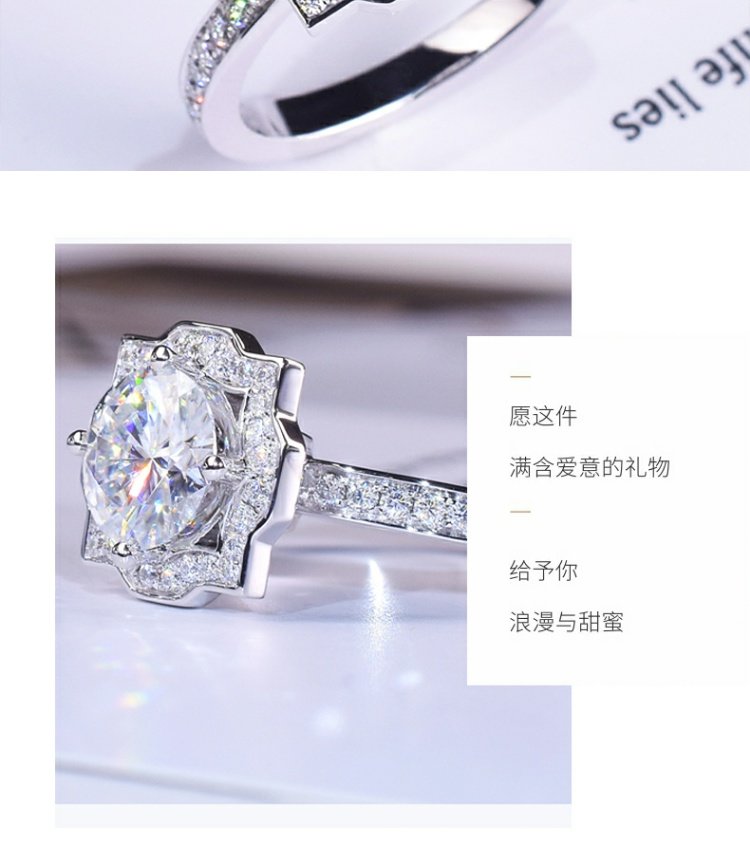 pt950鉑金莫桑石d色可過筆女鉆戒