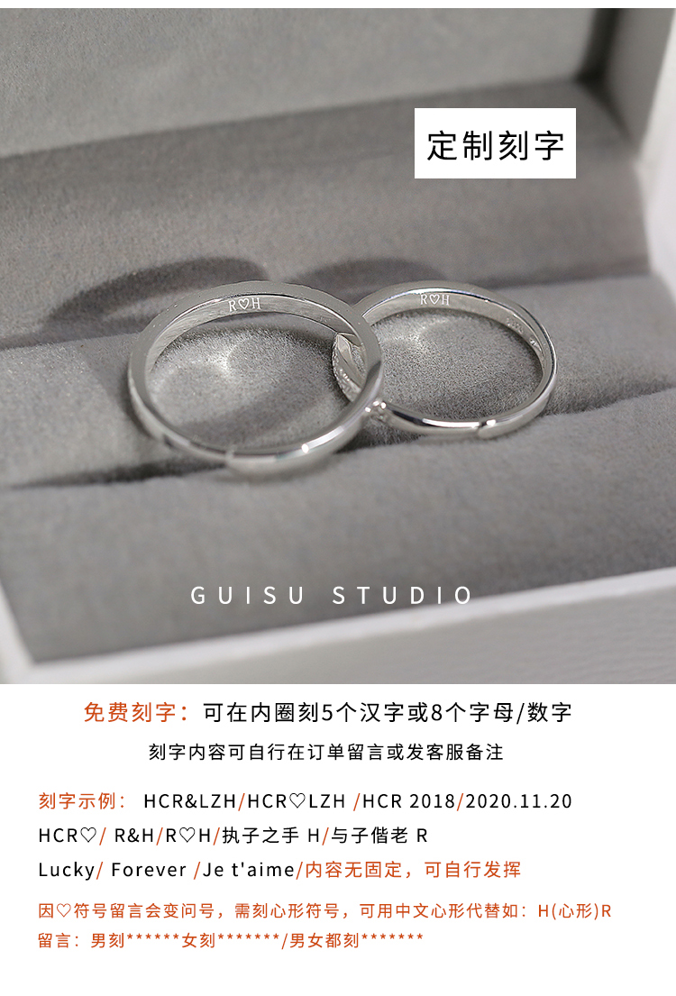 GUISU歸素時光痕跡999純銀情侶對戒小眾設計素圈情侶戒指一對禮物