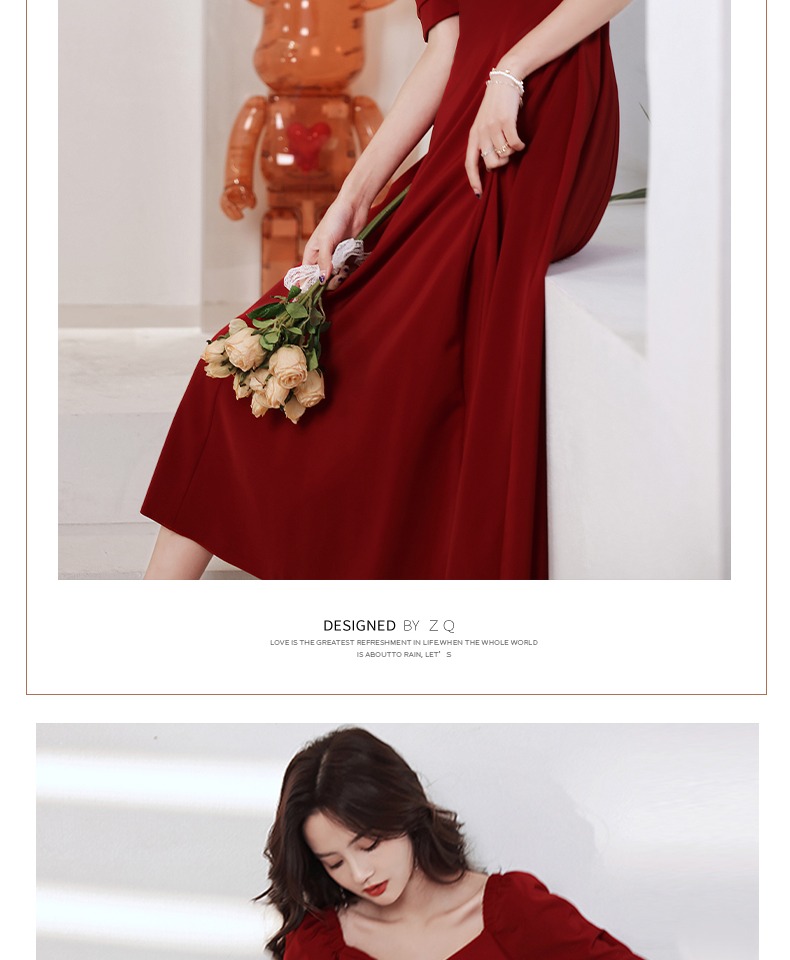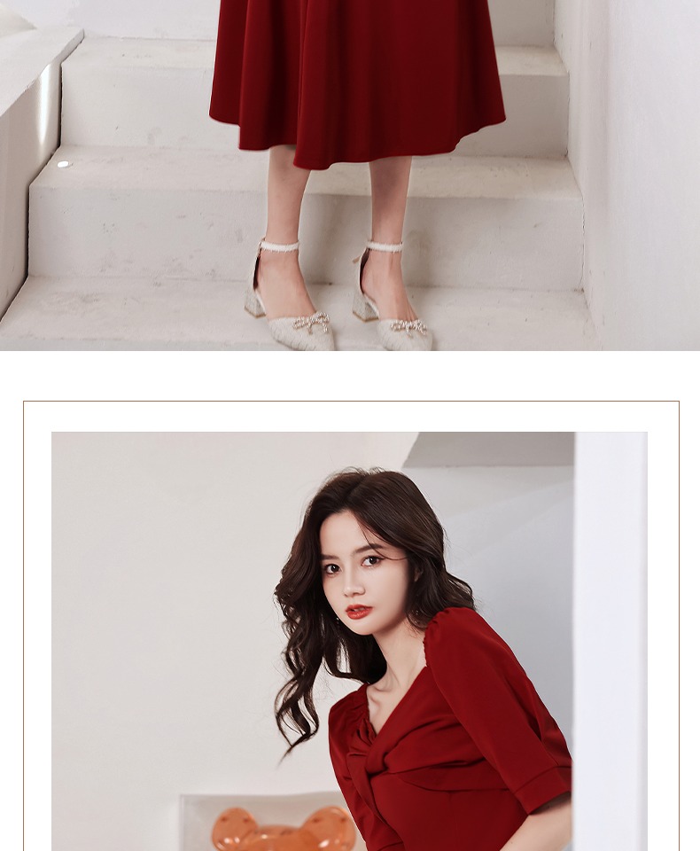新娘酒紅色平時可穿赫本簡單敬酒服