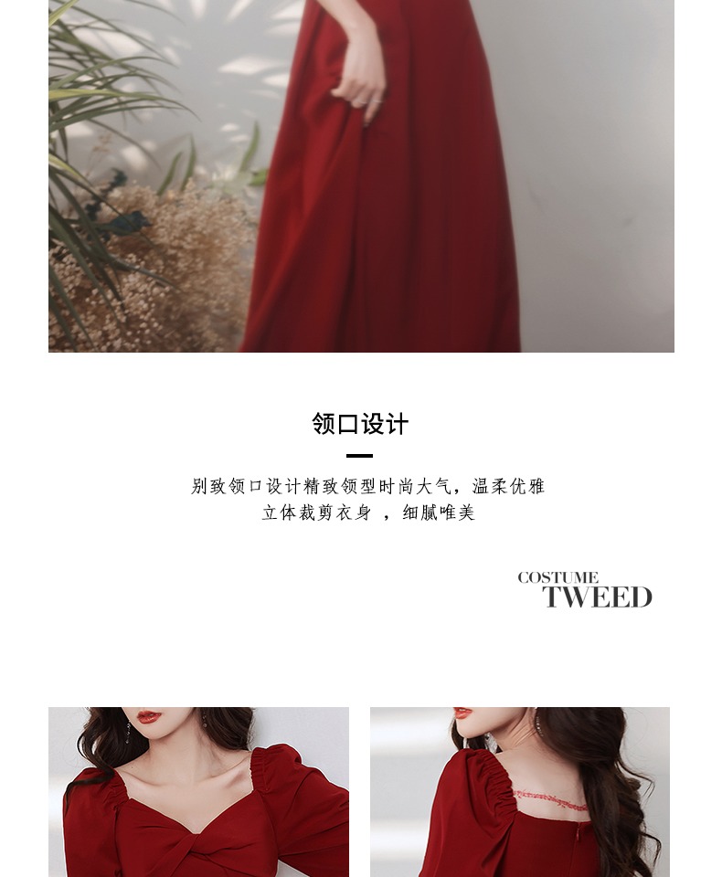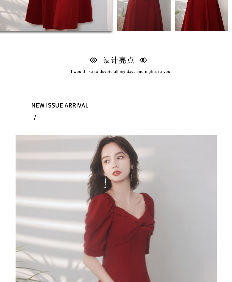 敬酒服新娘酒紅色日常可穿訂婚禮服知性優雅魚尾連衣裙法式紅裙子