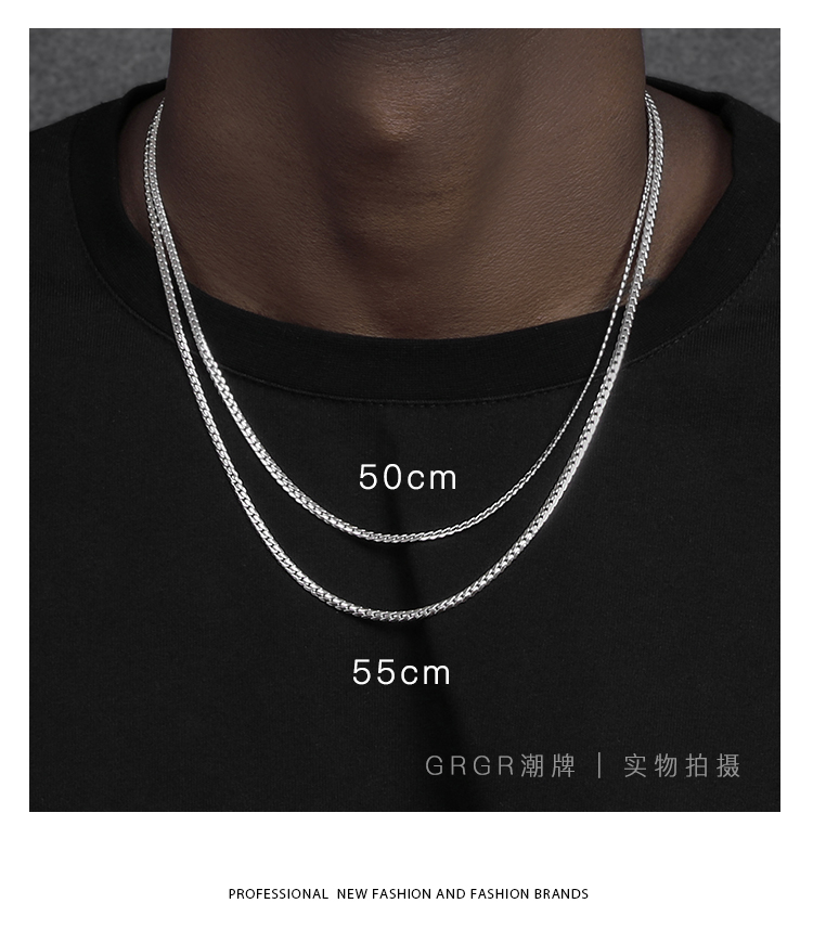S925 Cuban chain 純銀鍍白金加密古巴項鏈鎖骨鏈男士款銀項鏈潮