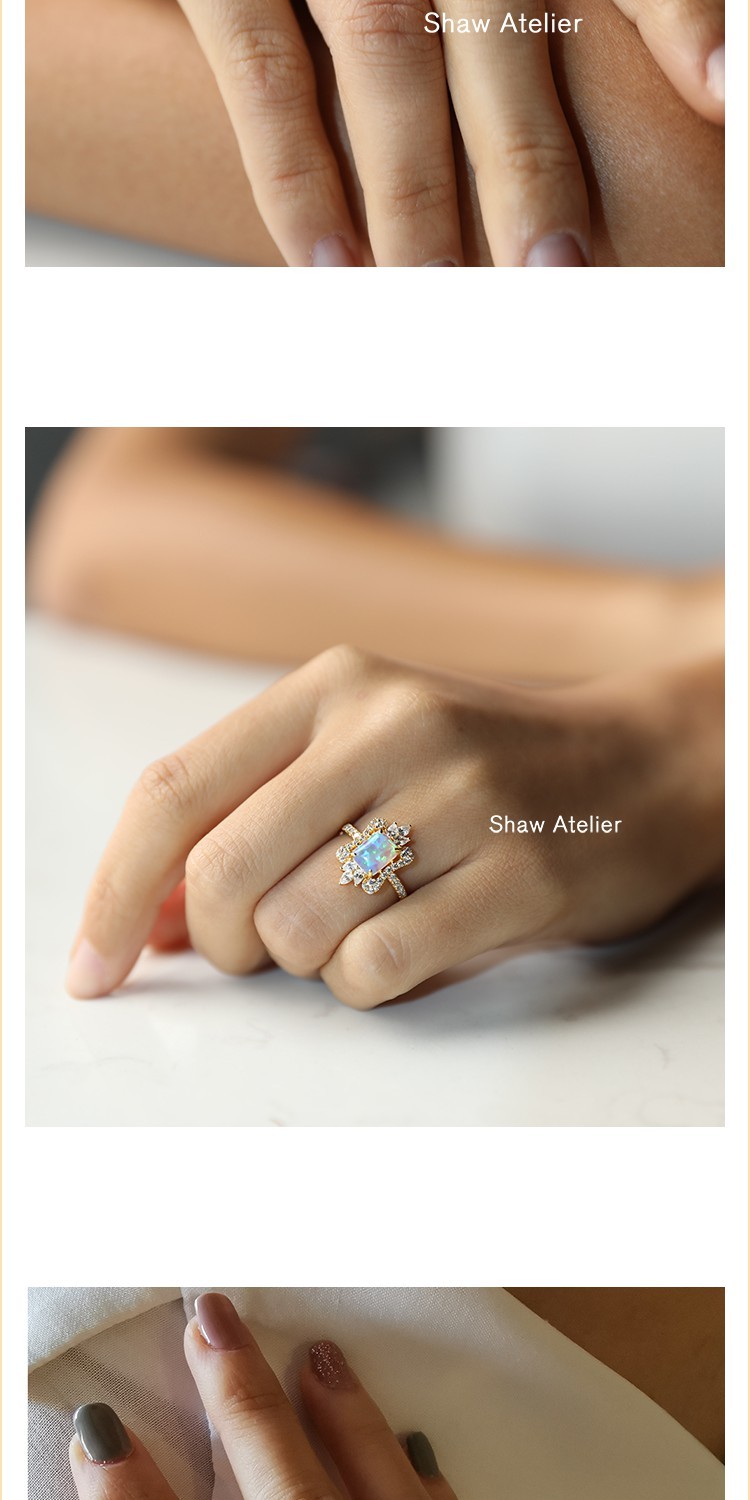 Shaw設計小眾915純銀鍍18K金復古宮廷歐泊寶石戒指