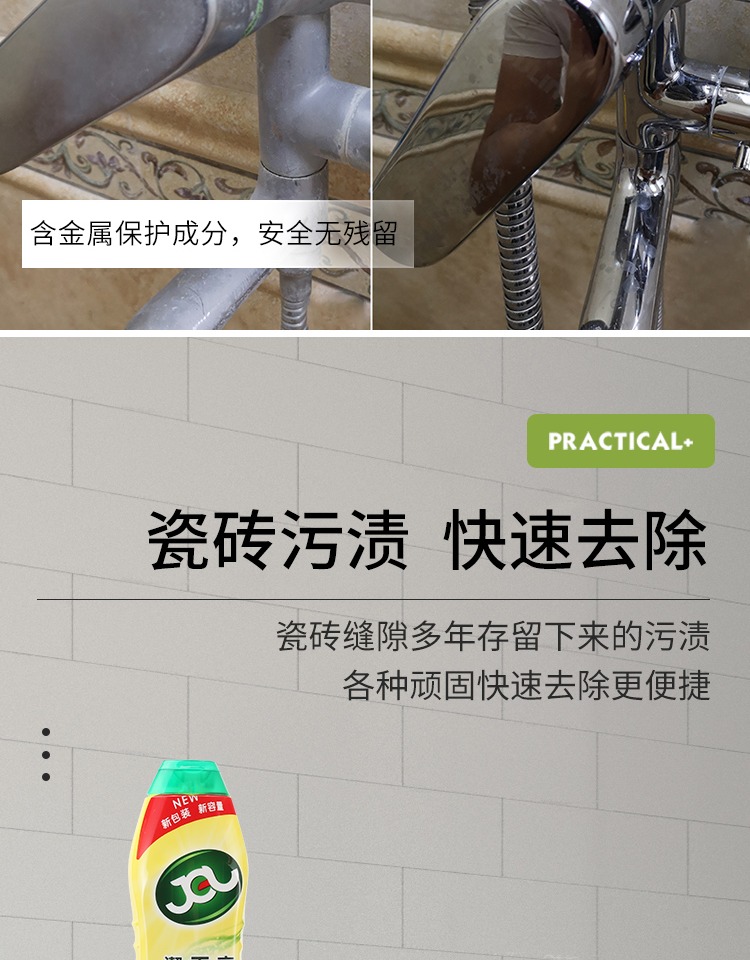 潔而亮特強去污液瓷磚清潔劑去異味強力除垢家用廚房不銹鋼清洗劑