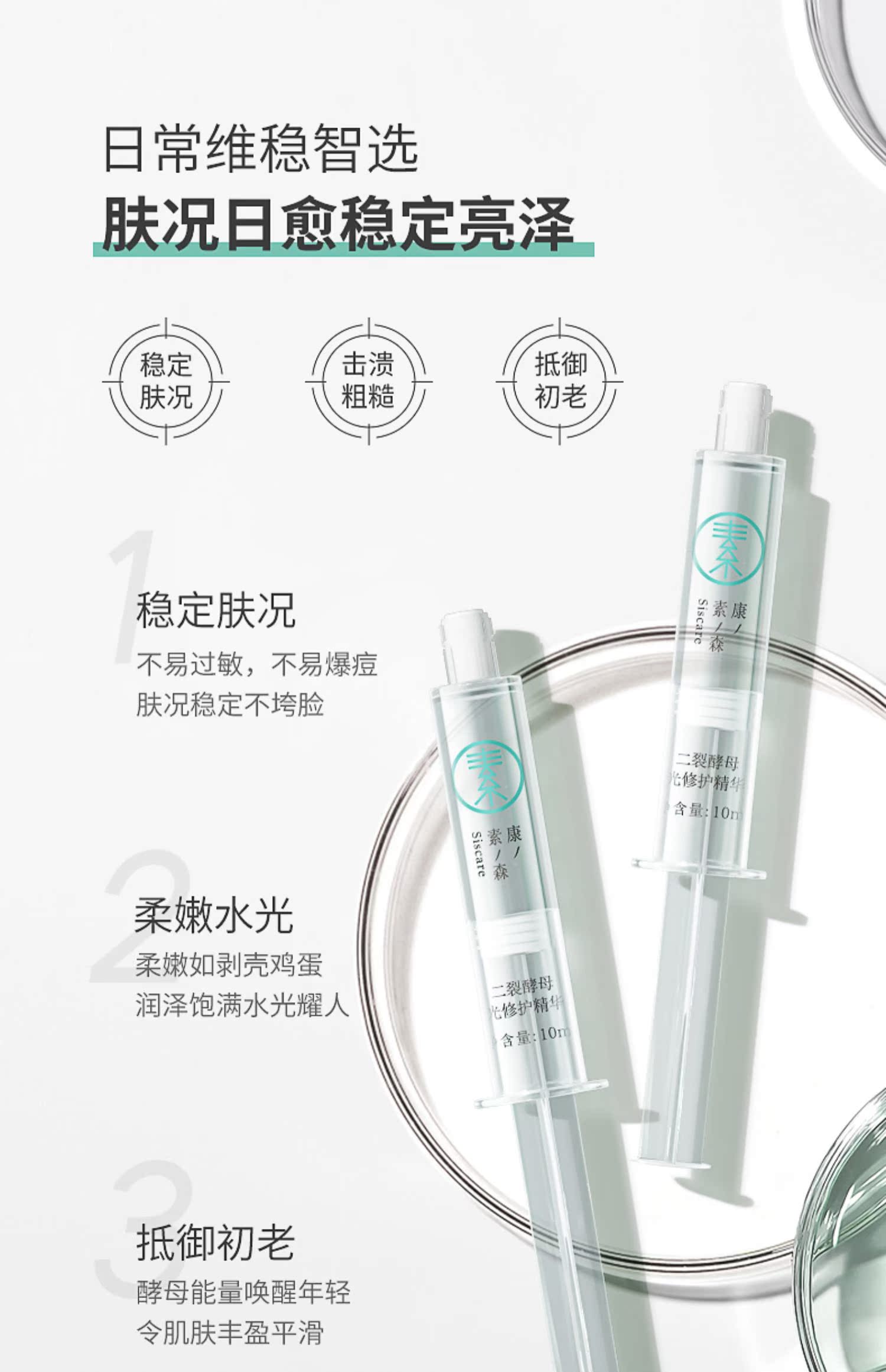 素森康二裂酵母水光精華液舒緩修護肌膚補水保濕熬夜提亮膚色男女