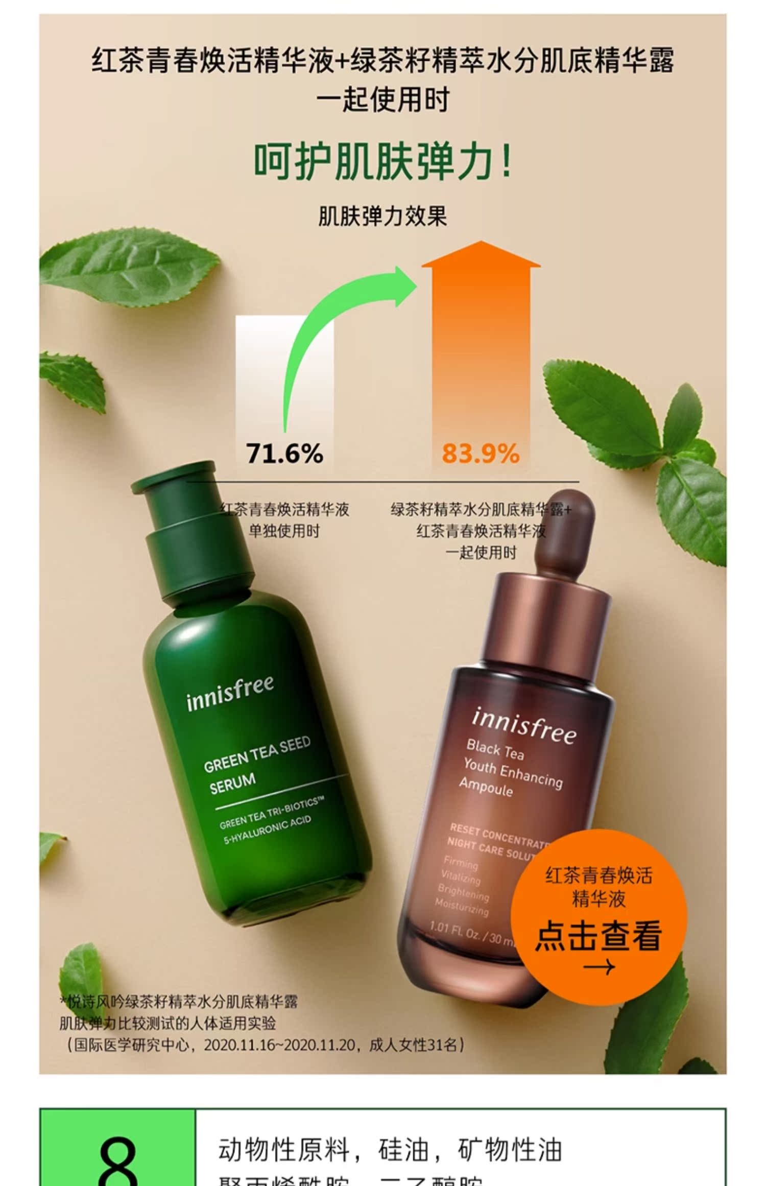 09¥ CZ0001 sNmvdBN4sXh¥ https://m.tb.cn/h.5VIhTBQ innisfree悅詩風吟綠茶籽肌底精華補水保濕新升級4代小綠瓶80ml*2 --------------------- innisfree悅詩風吟綠茶籽肌底精華補水保濕新升級4代小綠瓶80ml*2 --------------------- 新增益生菌、透明質酸等成分 更滋潤保濕 --------------------- 【原售價】518.00元 【現售價】234元。