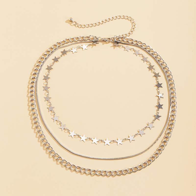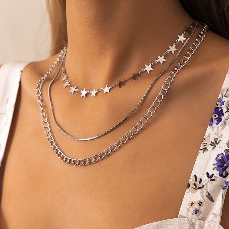 星星手工鏈方蛇鏈多層項鏈女歐美時尚氣質旅拍搭配女裝連衣裙配飾