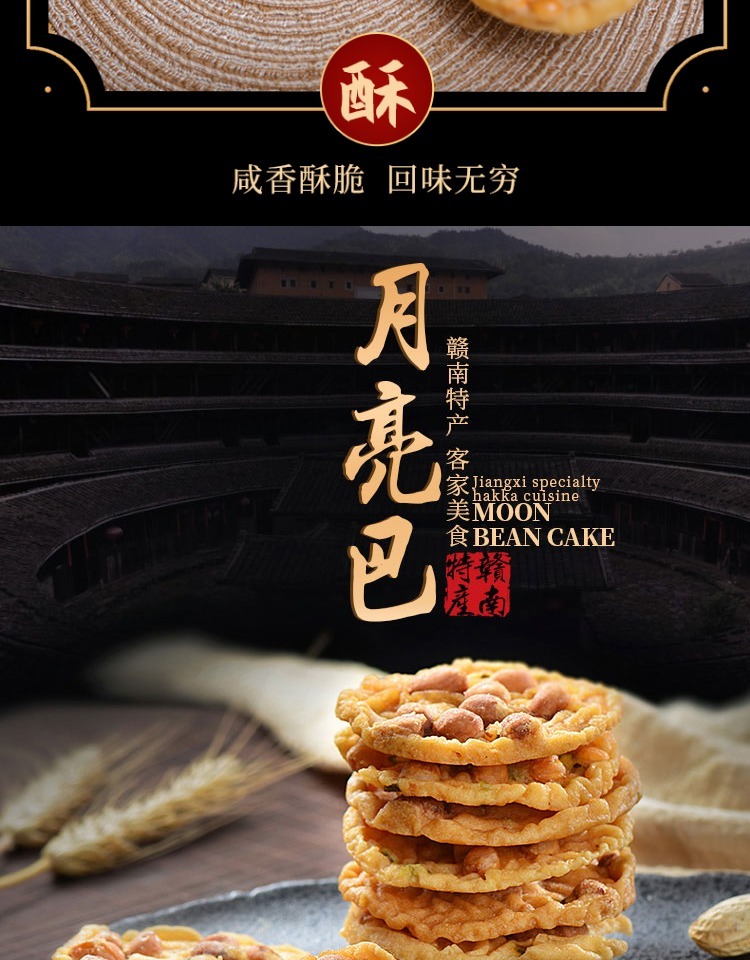 江西特產月亮巴贛州花生粑子贛南客家豆巴餅燒卷子粑鍋巴小吃零食