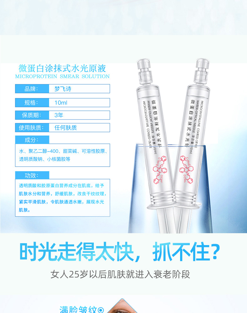 夢飛詩涂抹式小分子玻尿酸水光精華液潤肌膚干燥收縮毛孔國貨正品