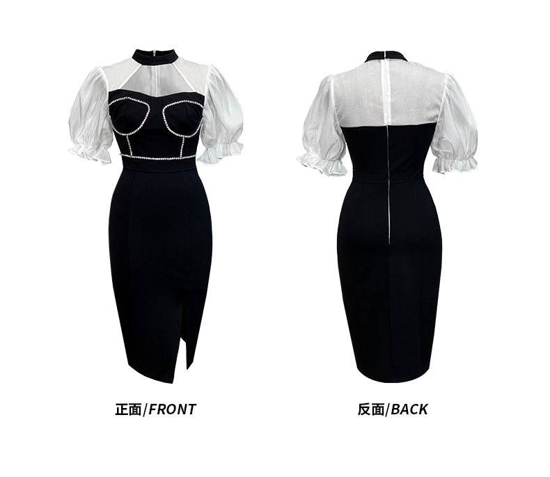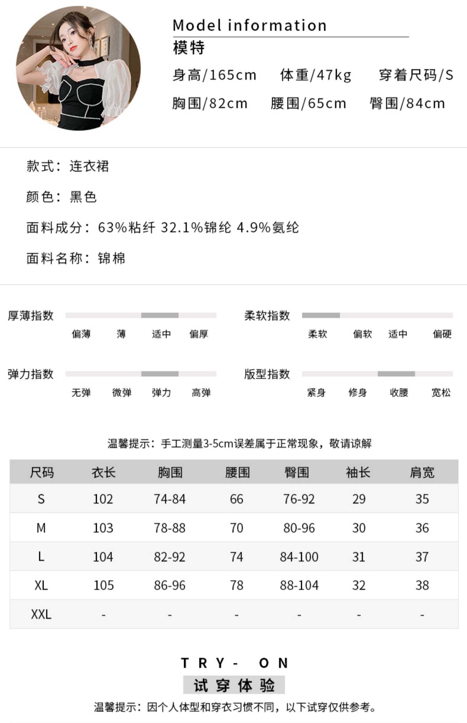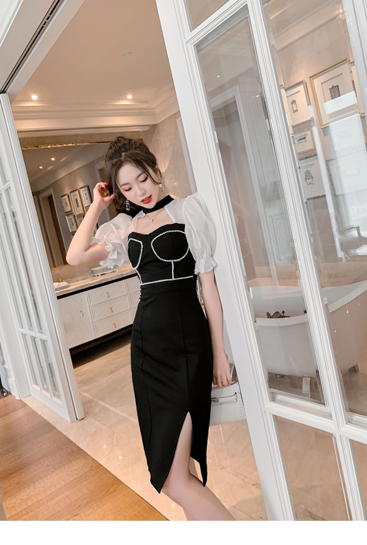 夏季新款泡泡袖修身宴會氣質連衣裙
