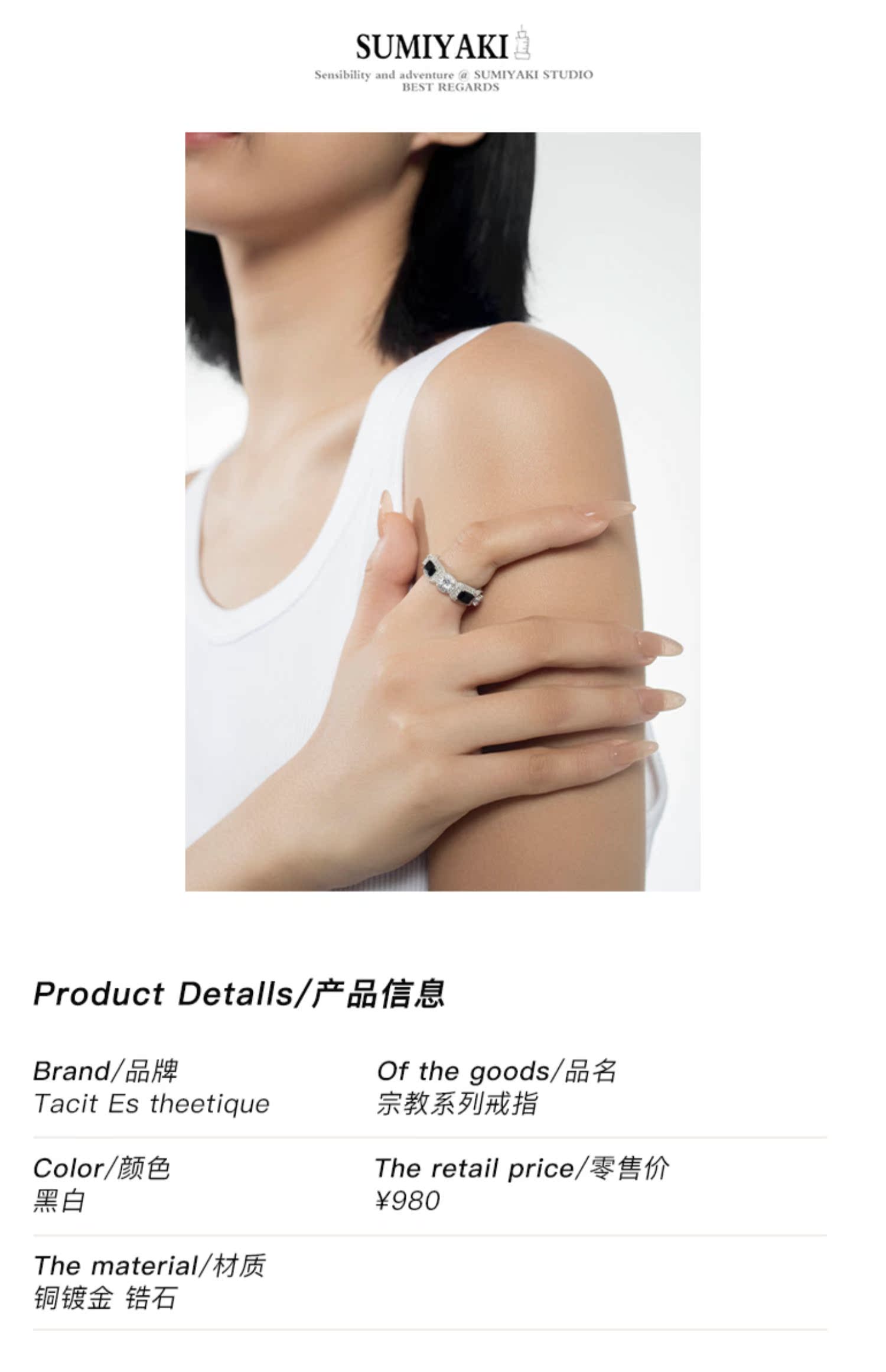 CHENSHOP設計師品牌Tacit Esthétique復古黑白鑲鉆戒指2021新品