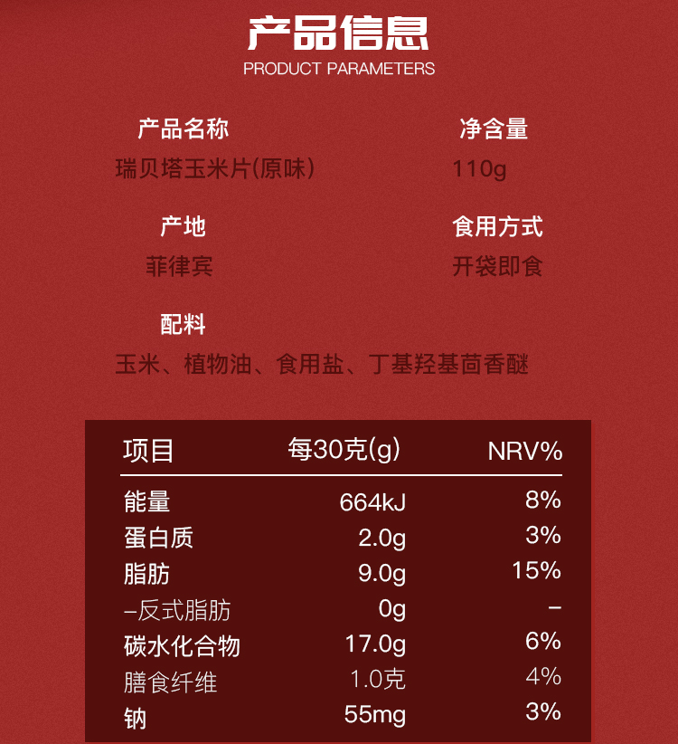 29¥ CZ3457 g5jlWZpFEOs¥ https://m.tb.cn/h.55BtPiY 【自營】【超值兩袋】進口瑞貝塔玉米片原味+香濃奶酪味110g薯片 --------------------- 【自營】【超值兩袋】進口瑞貝塔玉米片原味+香濃奶酪味110g薯片 --------------------- 大包裝 追劇搭配 --------------------- 【原售價】49.90元 【現售價】49.9元。