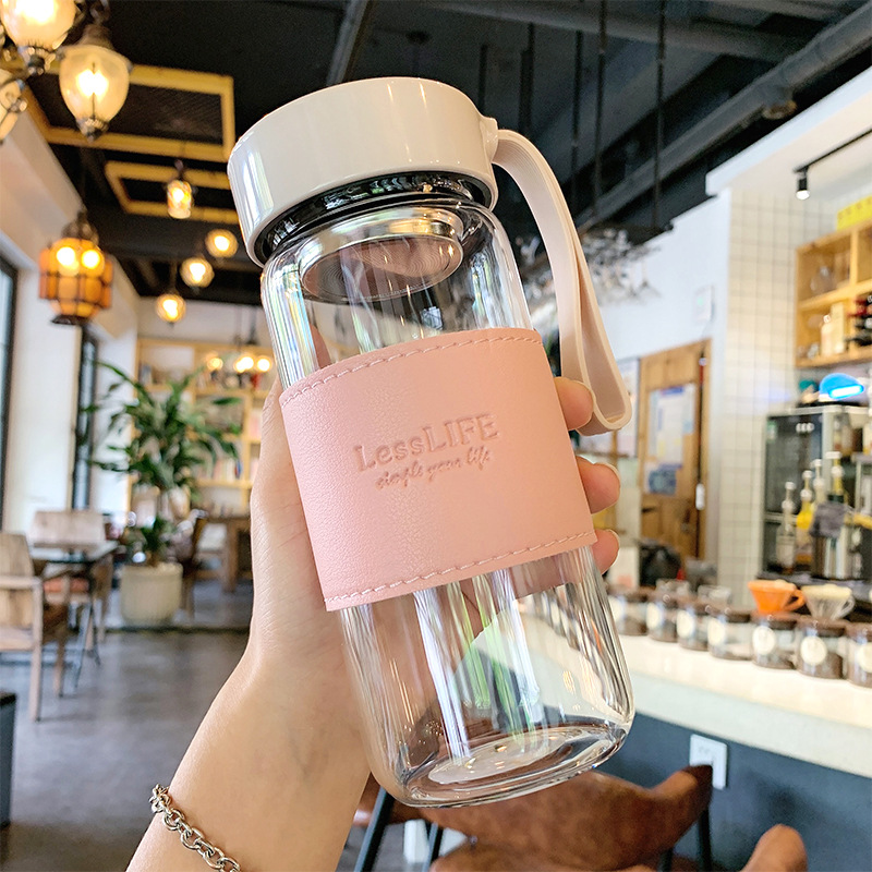 韓版清新耐熱玻璃杯女士帶提繩便攜茶隔泡花茶杯子男商務簡約水杯
