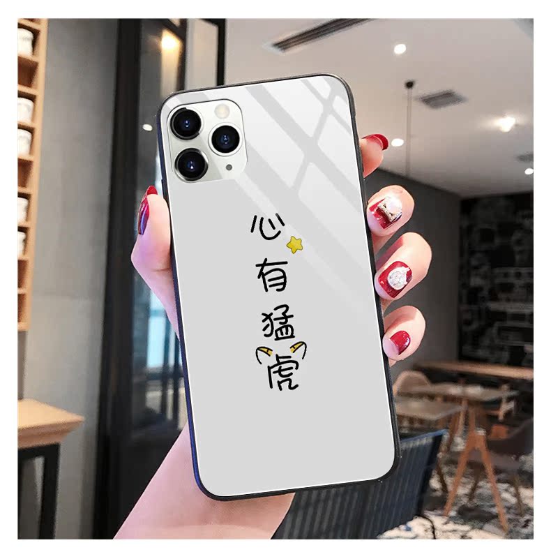 心有猛虎蘋果11手機殼iphone11promax情侶秀恩愛5s玻璃硅膠se2創意防摔7p可愛適用8plus新款6s保護套女6splus
