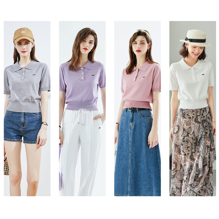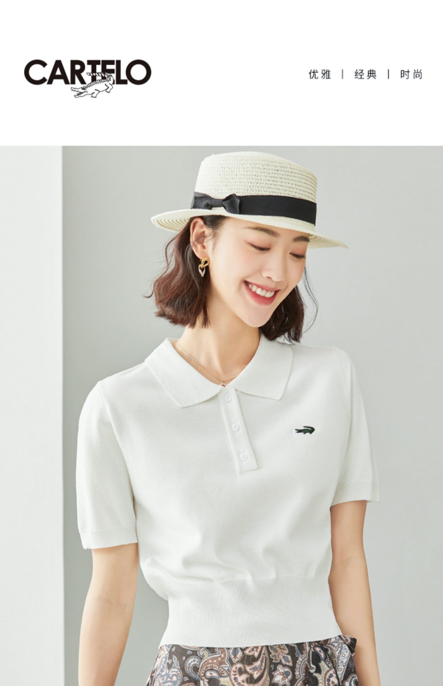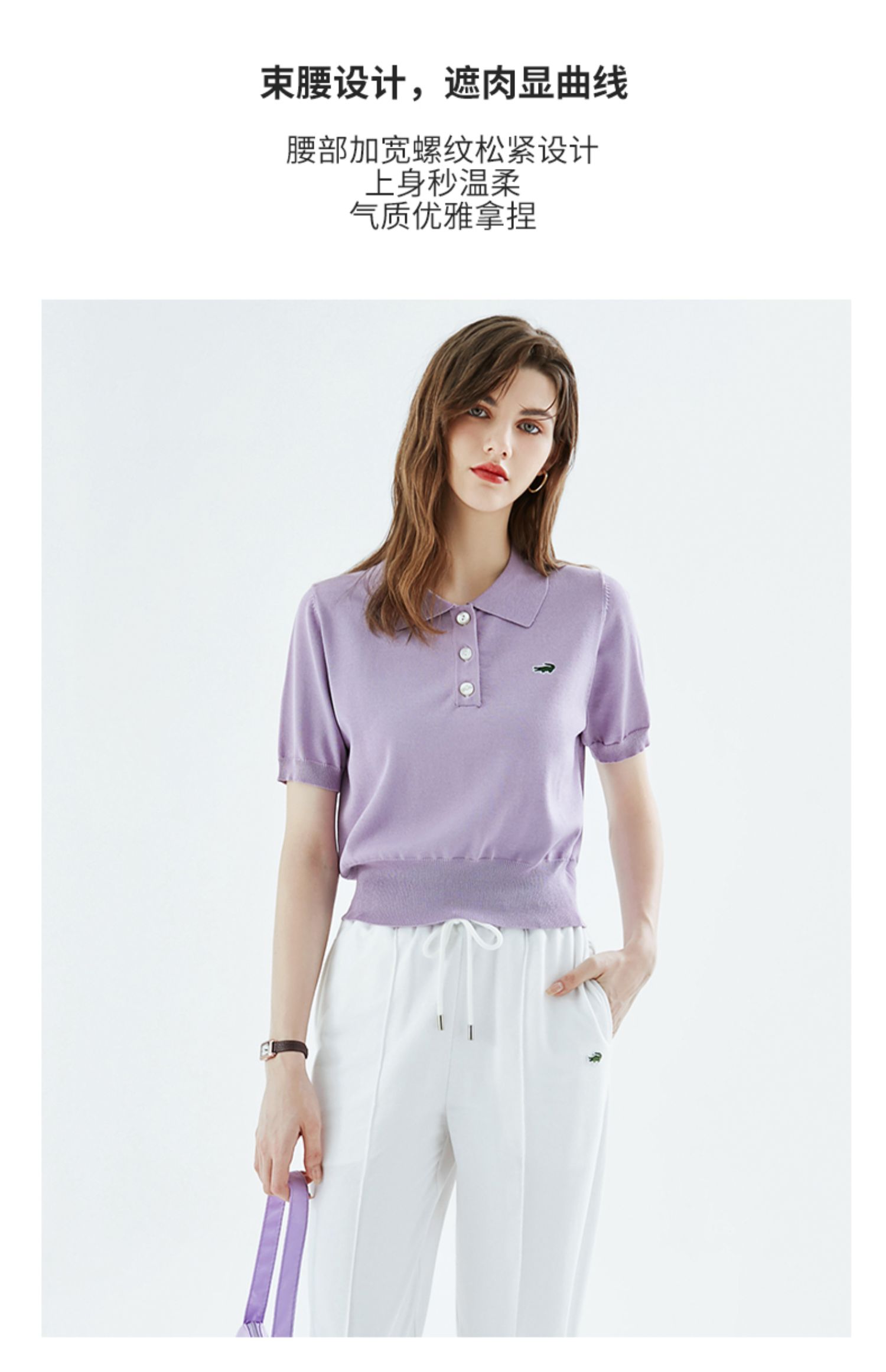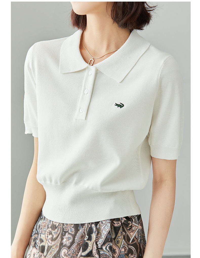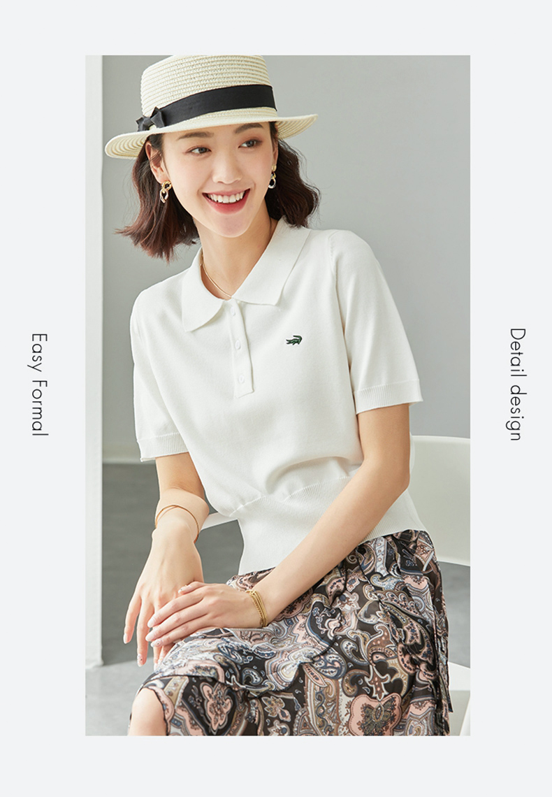 鱷魚白色針織polo領T恤女短袖POLO衫春夏短款T體恤顯瘦薄款針織衫