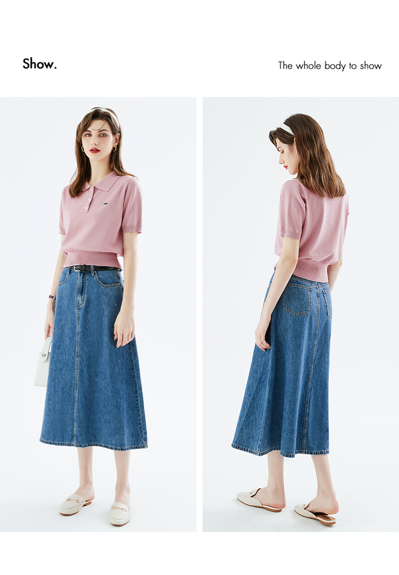 鱷魚藍色日系女夏純棉短袖t polo衫