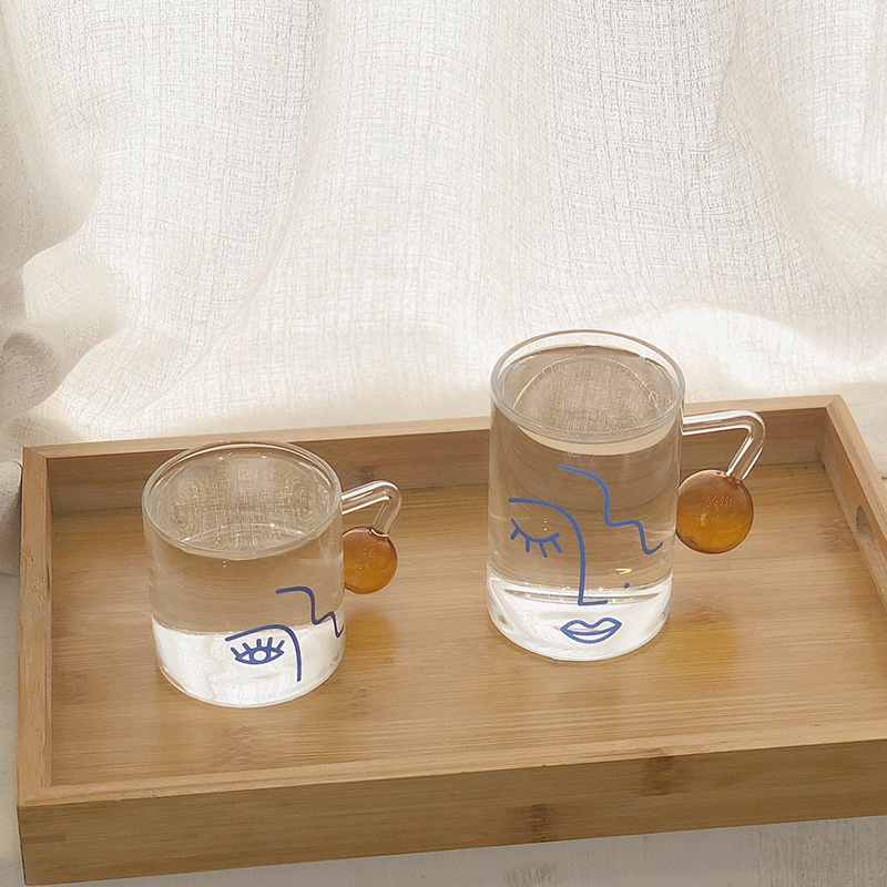 ins中古風胖嘟嘟玻璃杯耐熱透明咖啡杯可愛牛奶杯帶把冷飲果汁杯