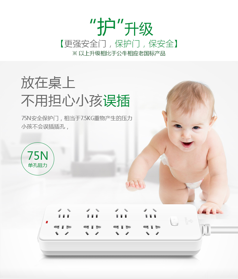 公牛過載熱保護插座超功率自動斷電正品家用多功能插排插線板排插