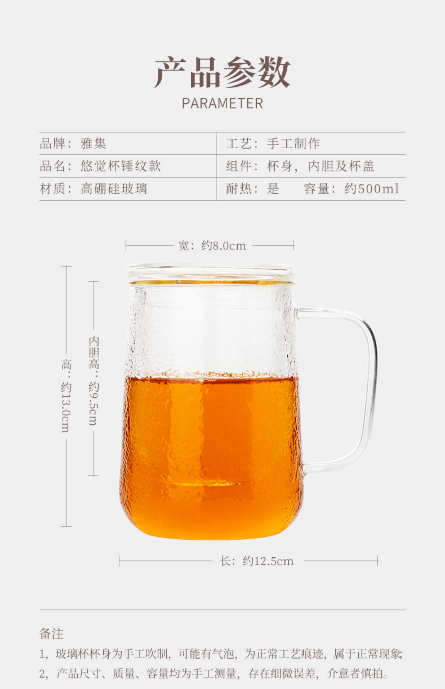 雅集筑茗高硼硅耐熱過濾玻璃杯