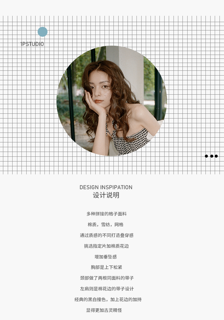 1P STUDIO原創設計 復古拼接格子花邊甜酷不規則吊帶連衣裙