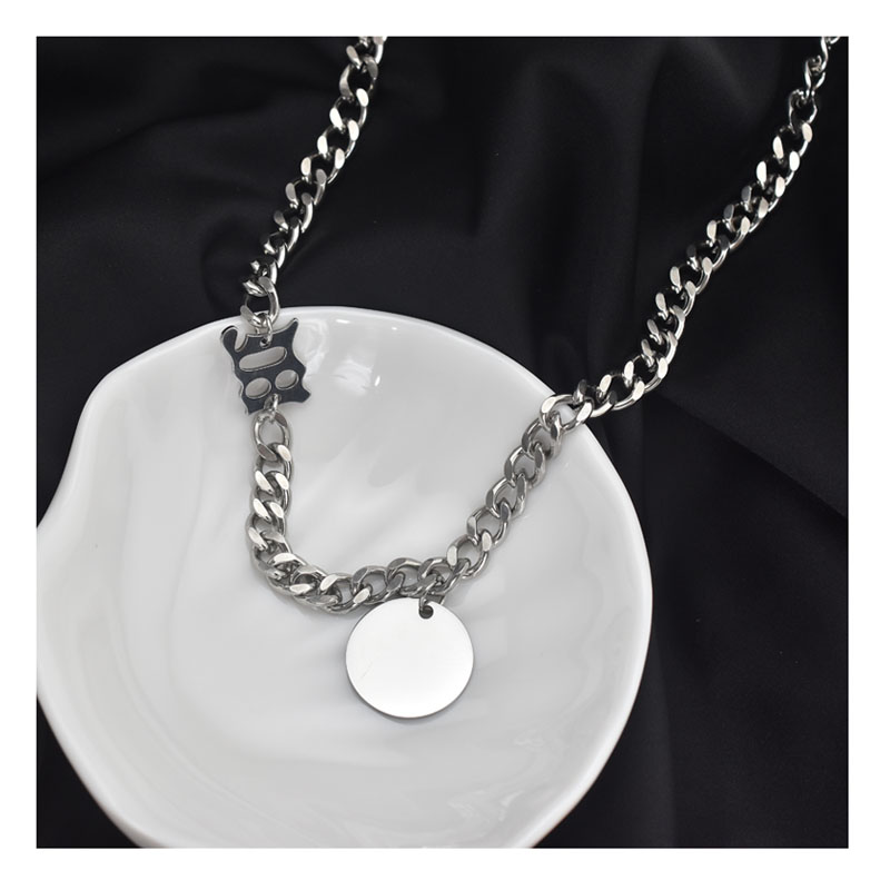 鈦鋼不掉色嘻哈古巴項鏈男女潮人個性字母圓牌吊墜粗鎖骨鏈子配飾