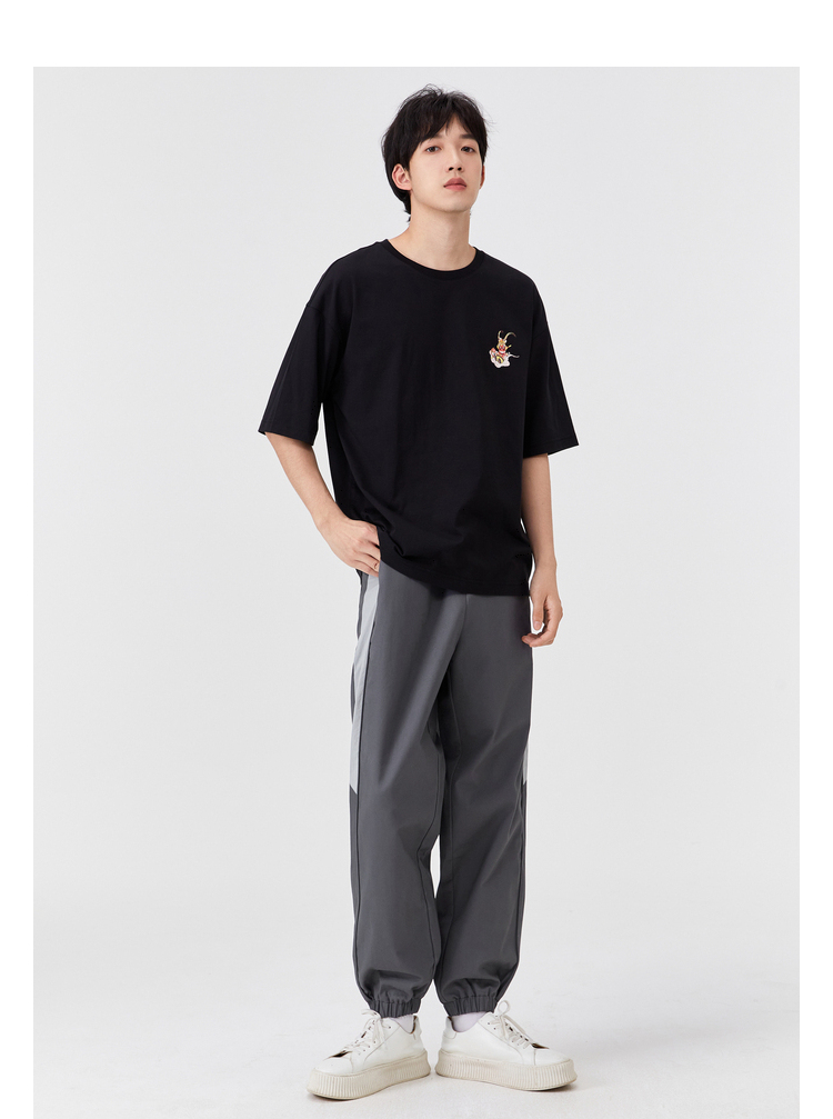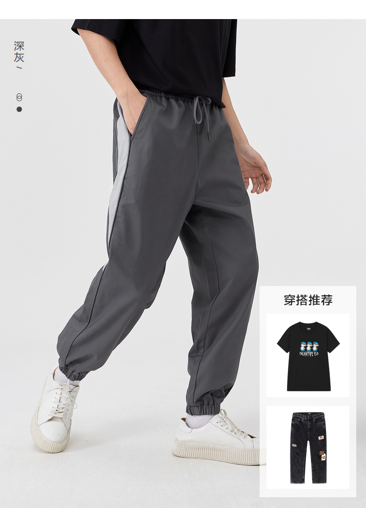 森馬休閑褲男士秋季新款直筒褲子男生寬松束腳運動褲撞色潮牌長褲
