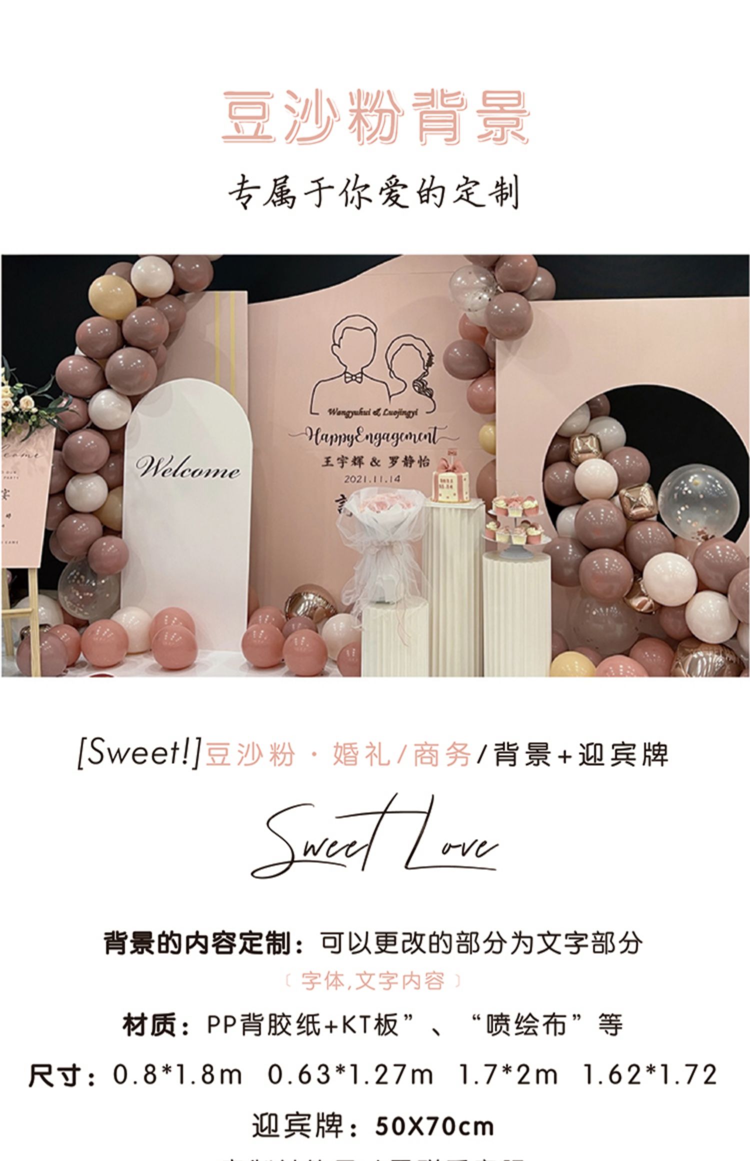 訂婚宴布置裝飾場景迎賓牌背景板定制KT板小紅書氣球喜慶套餐擺件