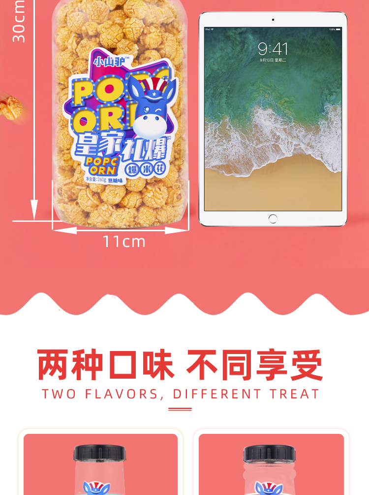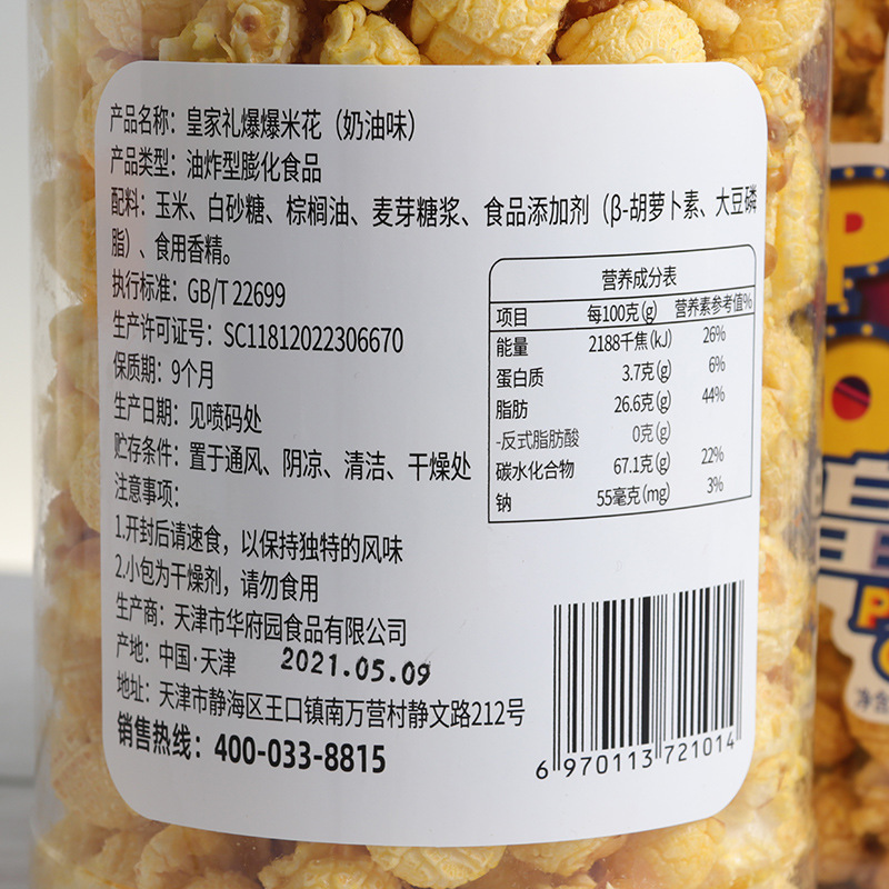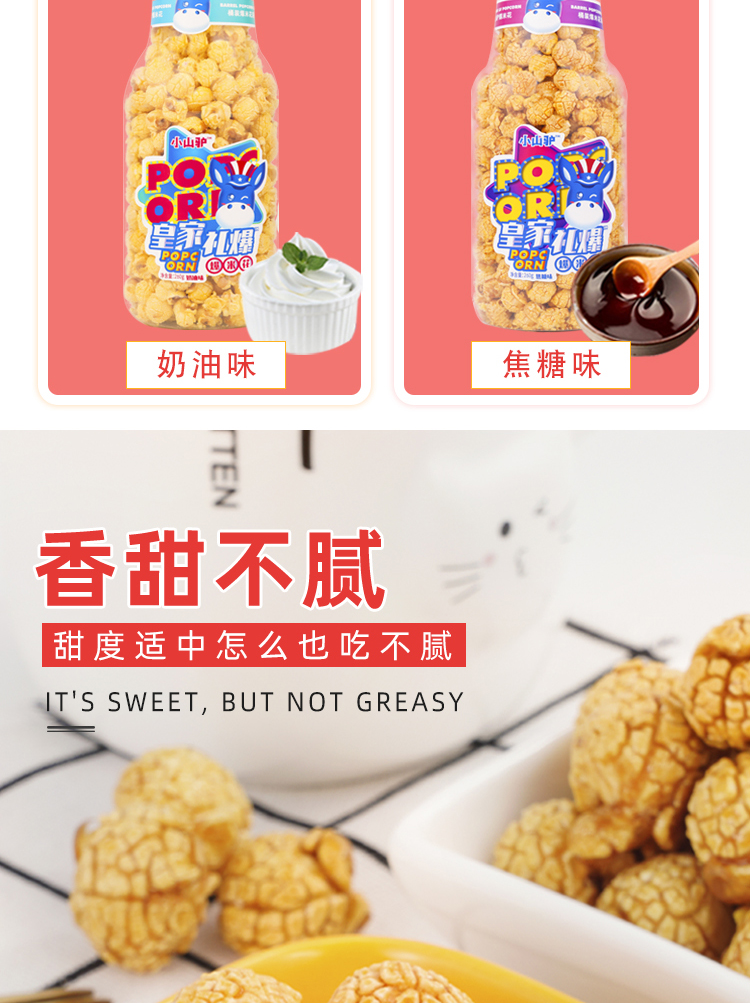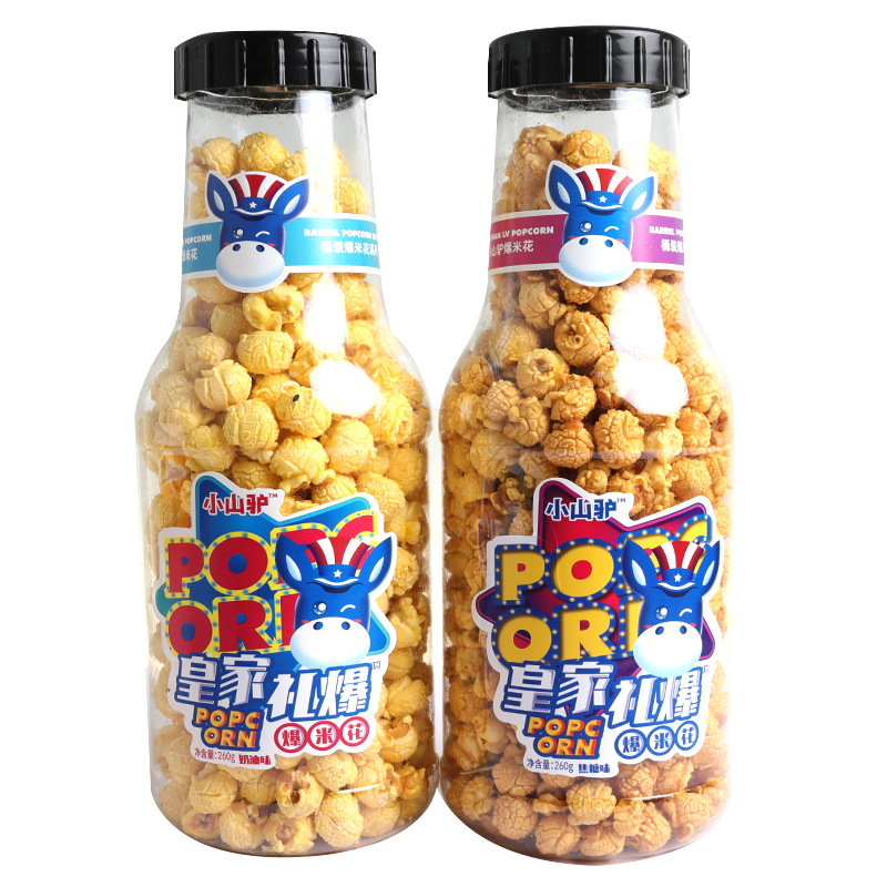 小山驢皇家爆米花瓶裝網紅膨化零食食品百樂瓶營養奶油味膨化球形