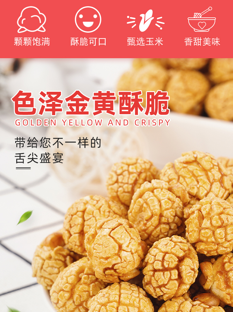 爆米花玉米粒零食老式影院芝士奶油焦糖玉米花球形美式追劇辦公室