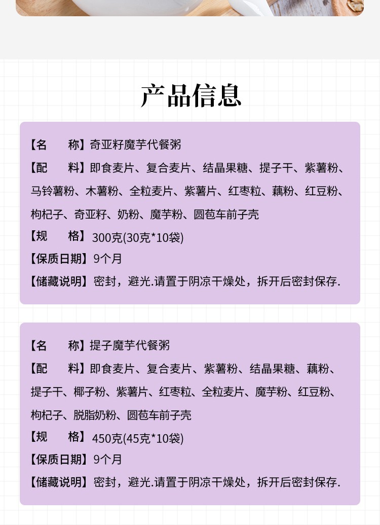 低脂奇亞籽紫薯魔芋代餐粥粉飽腹食品奶昔早餐速食減粗糧主食肥脂
