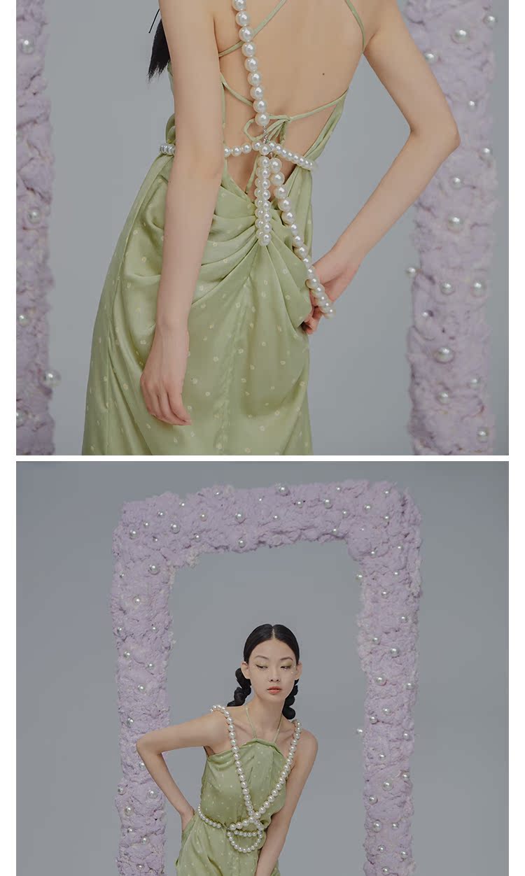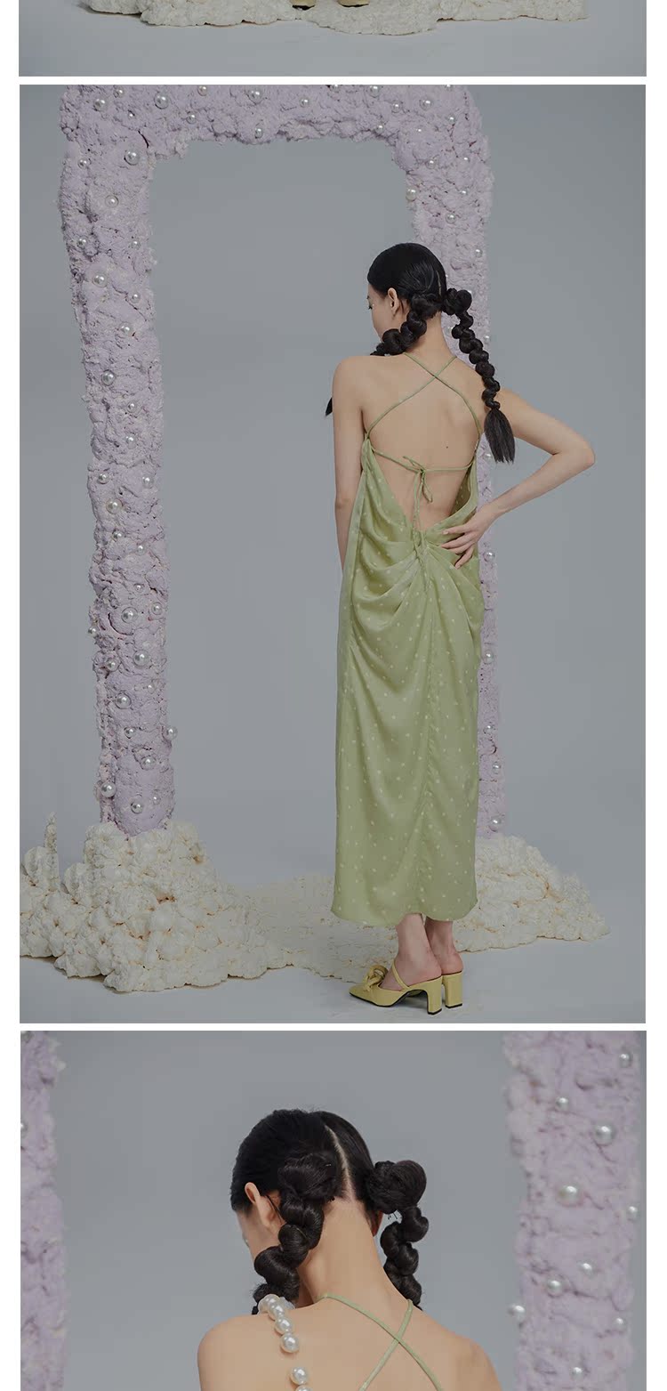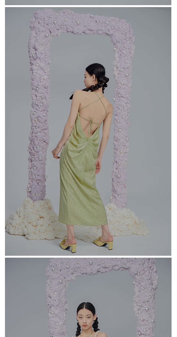 MildRate原創 仙女立體褶皺掛脖連衣裙優雅長裙新款