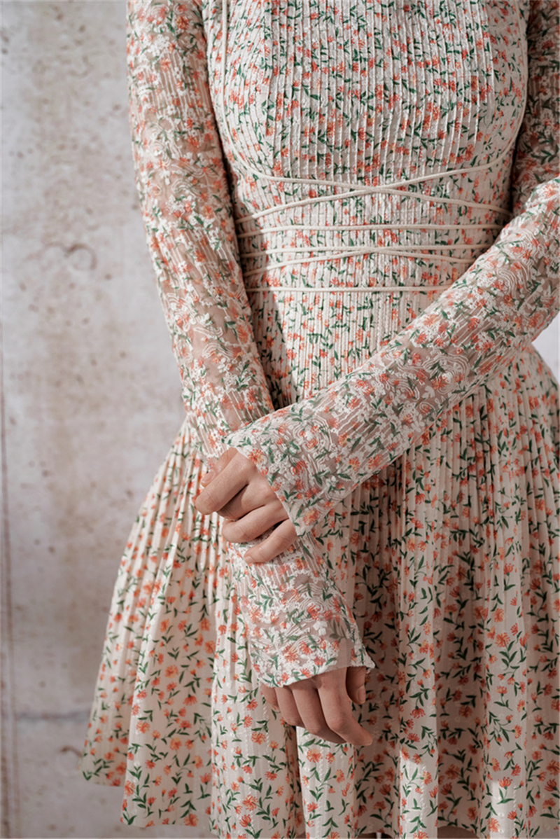 品牌授權 LOBBSTER越南小碎花細褶長袖連衣裙女蓬蓬裙