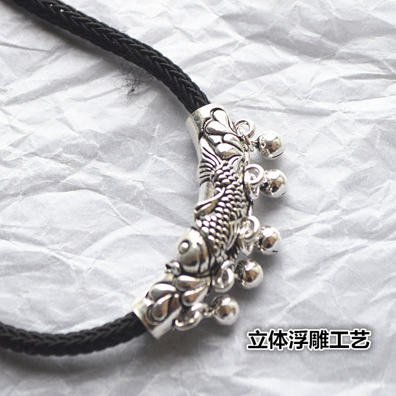 S925純銀原創計設鈴鐺鯉魚項鏈女手工編織鎖骨鏈復古個性氣質銀飾