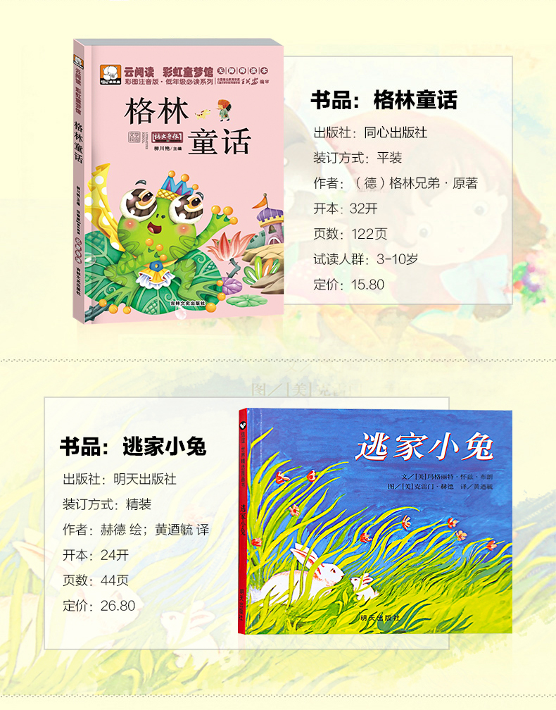 49¥ CZ0001 cxw9dAQFWBG¥ https://m.tb.cn/h.5UTvAGJ 7冊 繪本故事一年級閱讀課外書必讀 猜猜我有多愛你 爺爺一定有辦法 我爸爸逃家小兔 紅鞋子幼兒早教兒童書籍6一8歲安徒生格林童話 --------------------- 7冊 繪本故事一年級閱讀課外書必讀 猜猜我有多愛你 爺爺一定有辦法 我爸爸逃家小兔 紅鞋子幼兒早教兒童書籍6一8歲安徒生格林童話 --------------------- 小學一二年級 經典繪本童書套裝7冊 --------------------- 【原售價】104元 【優惠券】10元 【券后價】94元。