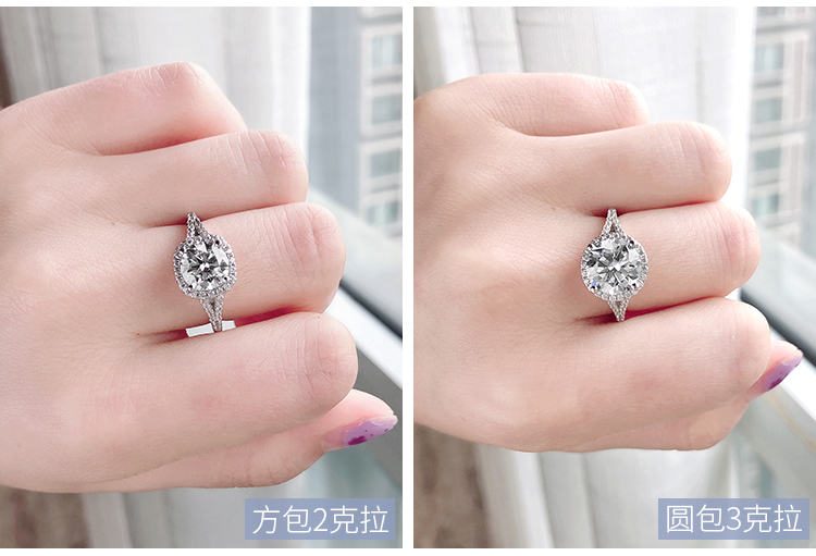 18K鉑金群鑲方圓包莫桑石戒指復古女1二3克拉鉆戒結求婚仿真鉆石