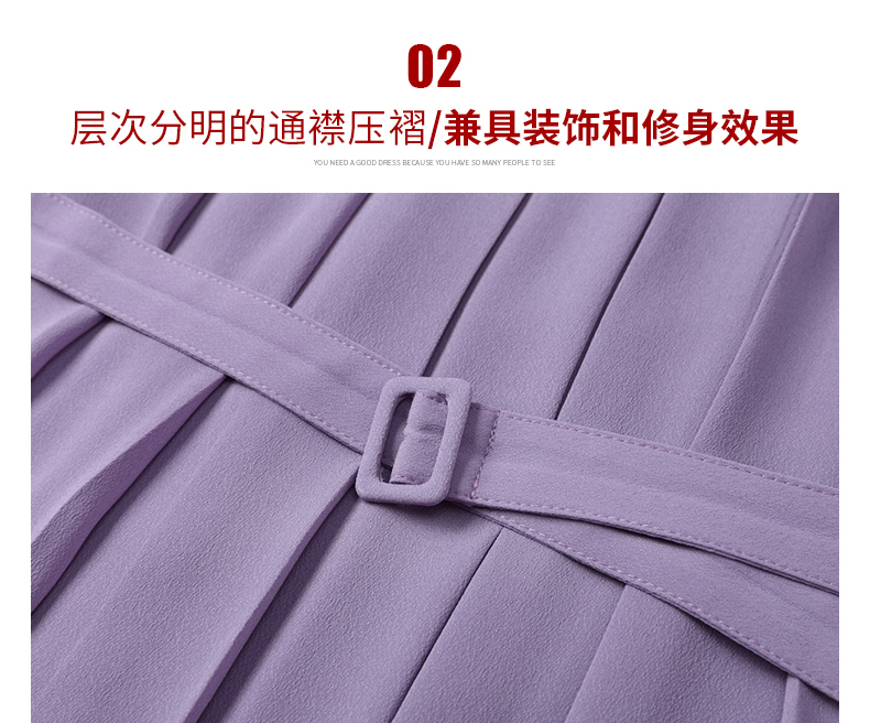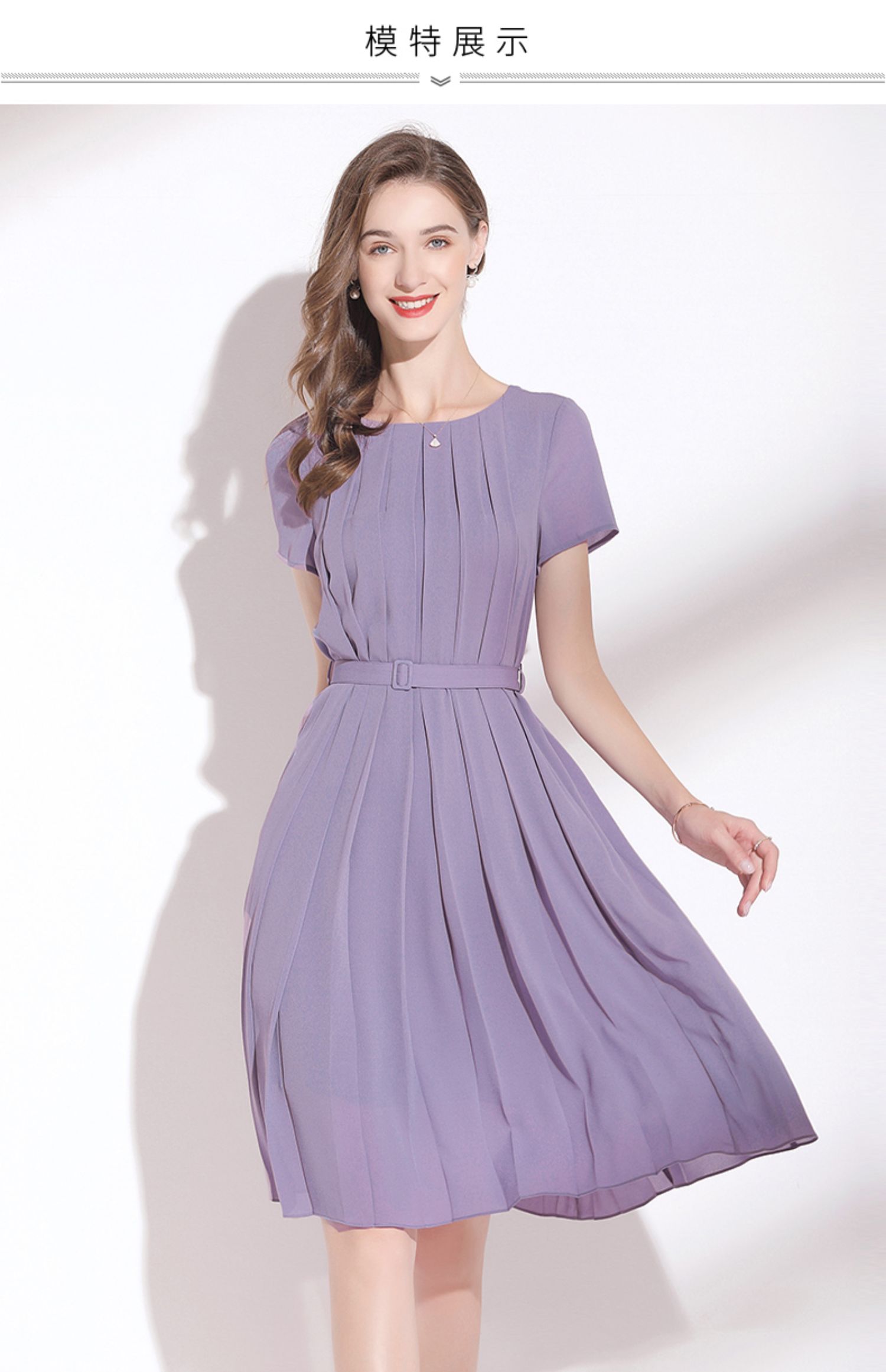 香芋紫連衣裙2023新款夏裝短袖氣質通勤系帶收腰中長款雪紡裙子夏