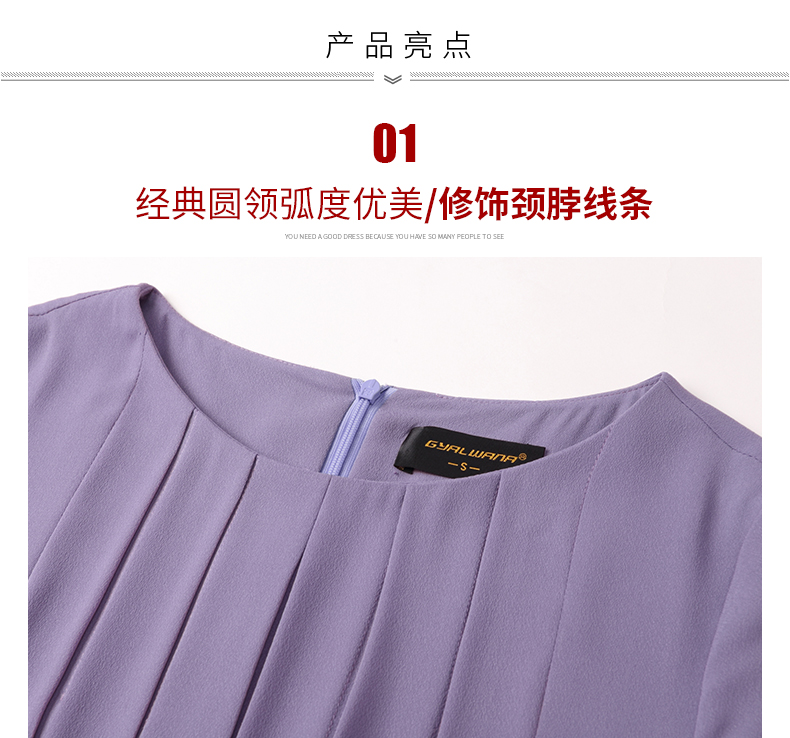 德瑪納短袖連衣裙女20夏季新款圓領收腰純色修身優雅簡約中長裙