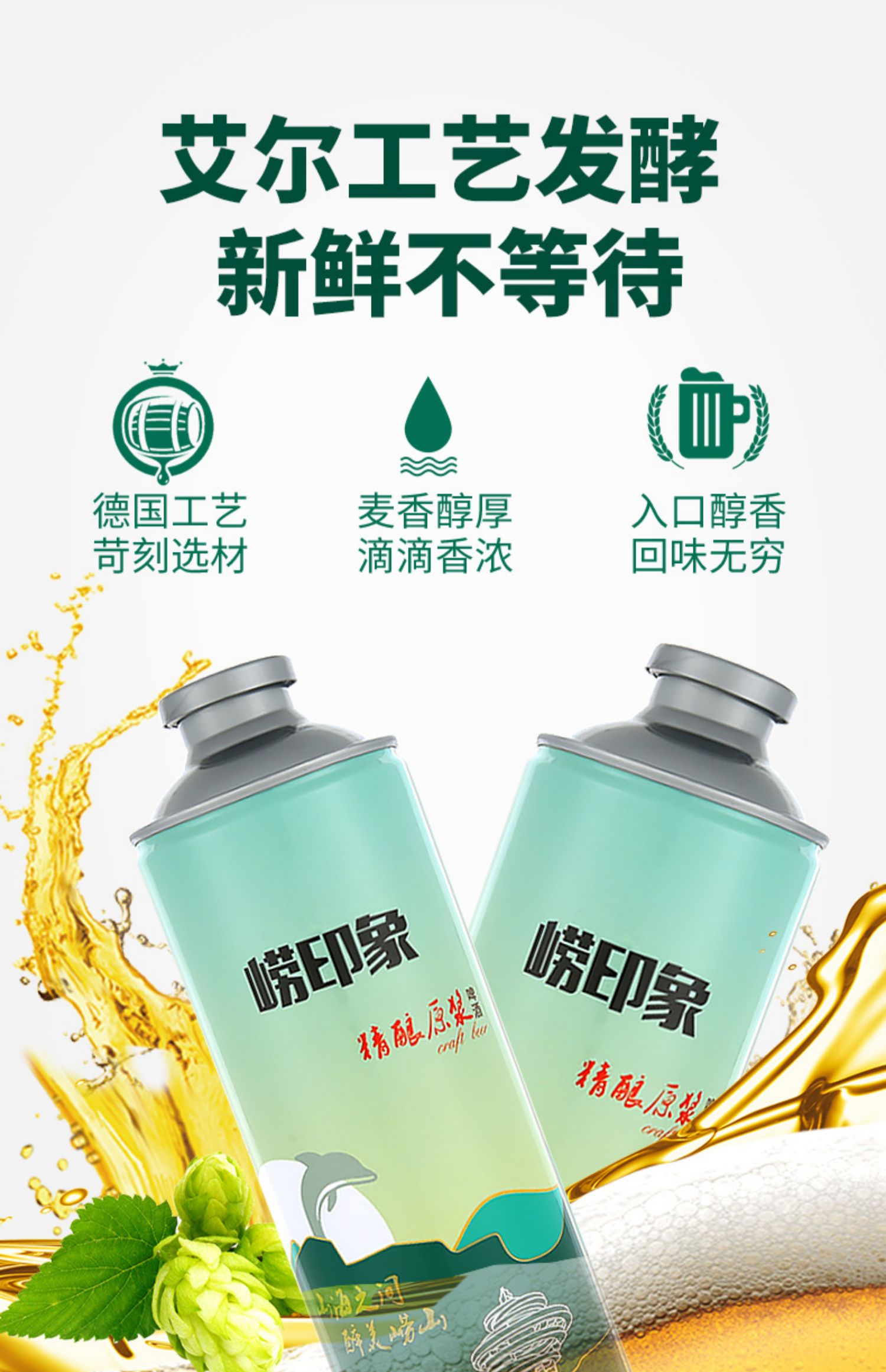 青島特產原漿啤酒嶗印象精釀原漿小麥白啤1L*12桶整箱特價扎啤
